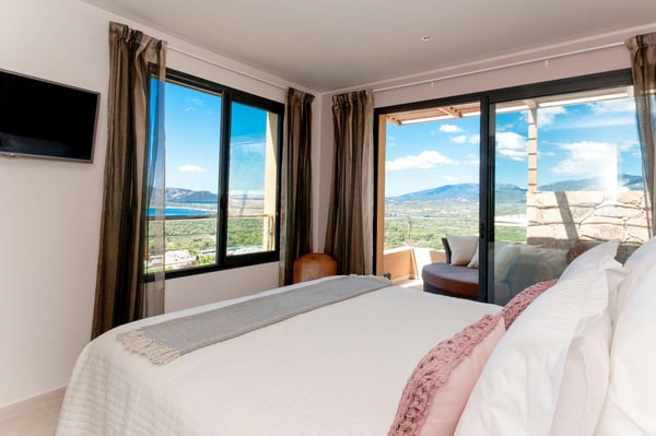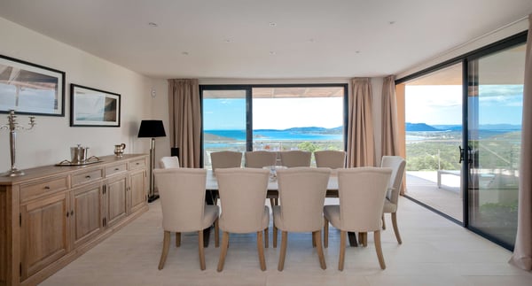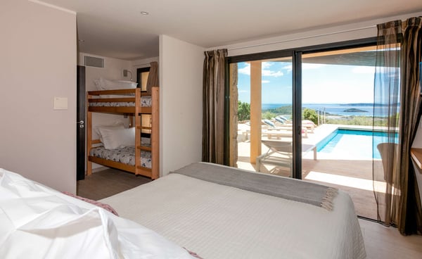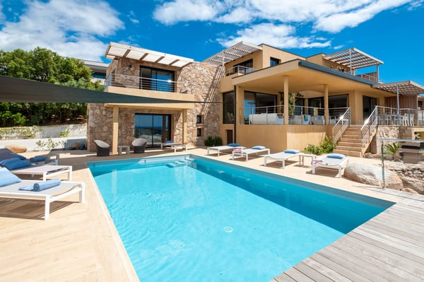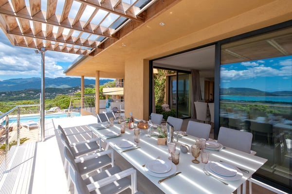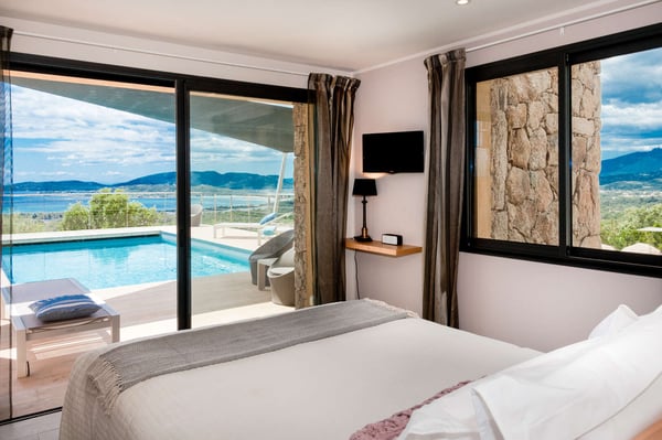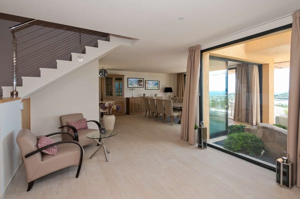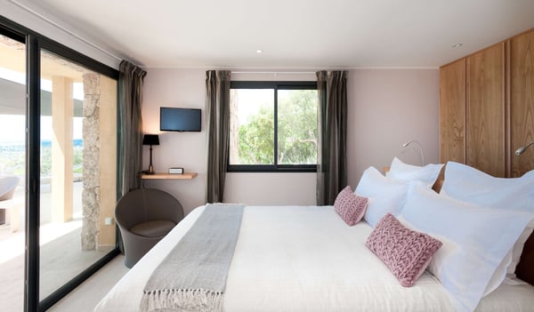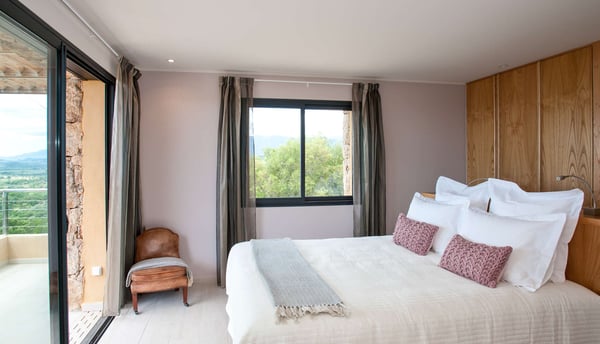 Villa La Jumelle is situated in a unique and superb location, in the region of Porto-Vecchio. This 235m2 luxurious and modern Villa with breathtaking mountain and sea views offers five bedrooms and five bathrooms, a spacious and comfortable living room, a large terrace for Alfresco dining, and a saltwater heated swimming pool. The perfect place for families and friends to unwind and enjoy one of the best Corsica panoramas!
