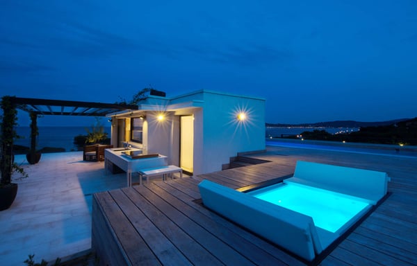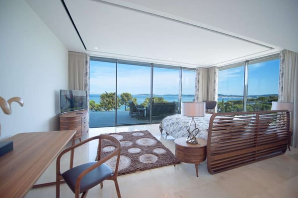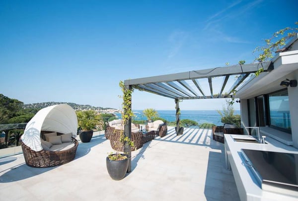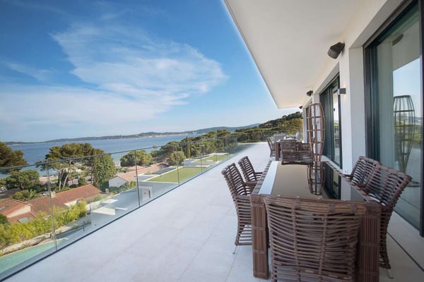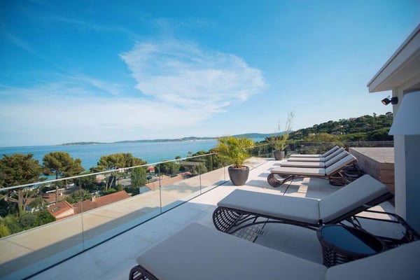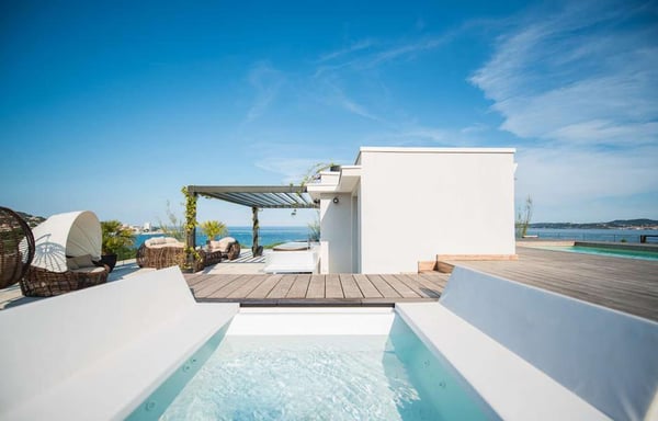 Villa Sainte Maxime is one of the most beautiful penthouses in the region of Saint-Tropez. Ideally situated just outside Sainte Maxime city centre, located on the rooftop of a four-floor building, it offers an exceptional sea view and luxury living environment in an 8000 sq m park surrounded by trees and direct access to the beach. There are five beautiful bedrooms, each with an en-suite bathroom, air-conditioning throughout, an elevator and a beautiful rooftop private swimming pool. With the possibility of renting two additional apartments with two bedrooms each.