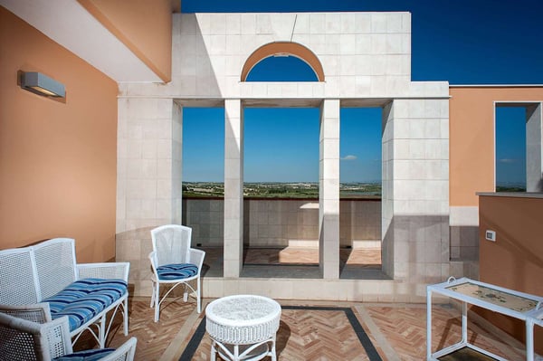 This exclusive villa with a private swimming pool is situated in San Lorenzo, near Marzamemi—a charming fishing village south of Syracuse. Ideally positioned just a few steps from pristine sandy beaches and the edge of the Vendicari Nature Reserve, known for its scenic trails, this recently built property offers a perfect retreat for up to 14 guests, making it ideal for large families or groups of friends. The villa is thoughtfully divided into three comfortable apartments with bright and spacious interiors. On the ground floor, you’ll find a cozy living room with a fireplace, a dining room, a fully equipped kitchen, a bathroom, and two bedrooms, each with an en-suite bathroom. The first floor features another kitchen, a living room that opens onto a large panoramic terrace, two bedrooms with private terraces, and a bathroom. The top floor boasts a hallway, a kitchenette, a master bedroom with an en-suite bathroom and sea-view terrace, as well as two additional bedrooms and bathrooms. The outdoor area is just as impressive, featuring a meticulously landscaped garden, a gazebo, a barbecue area, a stunning swimming pool, and a solarium—perfect for unwinding in the open air. This villa also serves as an excellent base for exploring the region’s highlights, including the gorgeous beaches, the Roman Villa of Tellaro, and the baroque treasures of Noto, Syracuse, Modica, and Ragusa-Ibla.