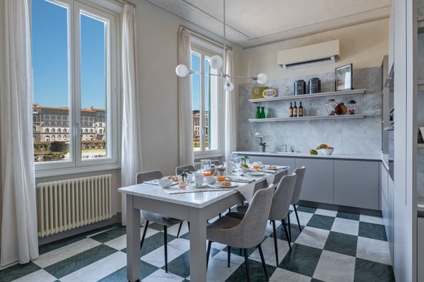 Live like the locals by staying at Apartment Rena, a gorgeous and brand-new luxury apartment located in the heart of the San Frediano district in Florence. This lesser-known area is not as popular among first-time tourists, so it retains its authentic flair with local artisan studios, small stores, and a vibrant selection of wine bars and restaurants. Furnished and decorated with a 1950s vibe, Apartment Rena enjoys some dreamy views over the Arno River and puts you at walking distance (twenty minutes or less) from all the main points of interest in the city, Ponte Vecchio, Piazza Pitti, Piazza della Signoria and Santa Maria Novella train station.