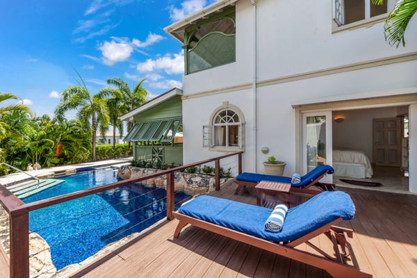 The Sugar Hill Resort community offers a number of resort amenities. Guests will have access to the Clubhouse, restaurant, resort swimming pools and tennis courts. Paradise Found, A18 Sugar Hill is a stylish luxury 4 bedroom villa located in the exclusive Sugar Hill community in St.James on the West Coast of Barbados. This beautiful detached, light, bright and airy villa features a large unique rock swimming pool complete with a huge marble swim up cocktail table and a separate plunge pool. The villa’s elegantly furnished living and dining room opens on to a spacious terrace via French doors, with various sitting and dining areas. There is also a large wooden decked area with comfortable sunloungers. The four bedrooms are all air-conditioned, tastefully furnished and all have en-suite shower rooms. There are two bedrooms located on the upper level of the villa, each with private balconies from where you can enjoy the distant sea views and sunsets. The third bedroom is located on the ground floor and he fourth bedroom is located in the separate deatched cottage which also has a small kitchenette. Sugar Hill is a private exclusive gated inland community, located on 50 acres overlooking the Caribbean Sea, and is a short drive away from the fabulous west coast beaches as well as the amenities of Holetown, which include international brand shopping, banks, vibrant nightlife and an excellent choice of restaurants. Guests staying at Paradise Found enjoy access to the Sugar Hill Clubhouse, restaurant, pool, fitness centre and tennis courts and membership at the exclusive Fairmont Beach Club.