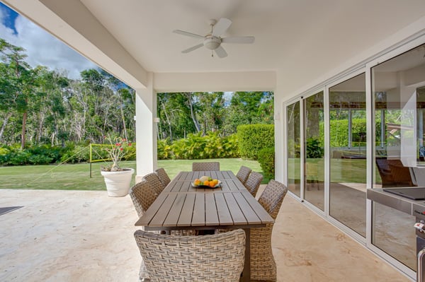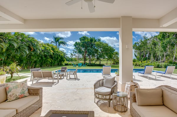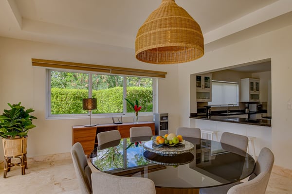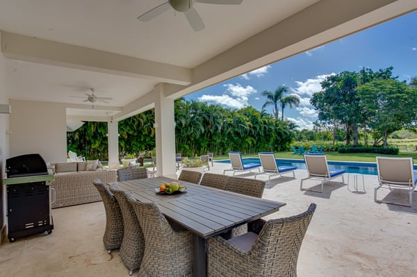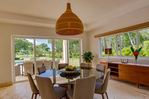 Guests staying within Puntacana Resort & Club will have access to all resort amenities and facilities. Resort amenities and facilities include two golf courses ($), two beach clubs ($), Six Senses Spa ($), restaurants ($), bars ($) and tennis centre ($). Golf is the main course and beautiful white-sand beaches the side dish at Hacienda neighborhood. Part of the Punta Cana Resort and Club gated community, this luxury vacation rental looks out over the fairways and is only minutes from the beach club. The bright, airy home and its four suite-style bedrooms can accommodate up to ten friends and family members. Your holiday at the resort includes private check-in at the villa, and a platinum concierge. The hacienda’s sunny terrace, with loungers and a pool overlooking the golf course, is the perfect spot to relax and read during the day, while the shaded outdoor living and dining areas are ideal for unwinding after a challenging eighteen holes. Airy and elegant, the villa’s interiors are clad in creamy stone and crisp white paint. The home is laid out around a double-height living room with a pair of sofas and a broad doorway to the terrace. Double doors lead into the formal dining room, where a refined combination of tufted and woven chairs seat eight. The fully equipped kitchen takes a more modern tack, with sleek cabinetry and a practical breakfast bar, and there’s a barbecue for laid-back al-fresco dining. Whether you’re finally checking off a bucket-list golf course or have been coming to the Dominican Republic since your honeymoon, you’ll fall in love with Punta Cana for its vibrant scenery and range of activities. From the hacienda, it’s less than 10 minutes by golf cart to the oceanfront La Cana golf course, named one of the best in the Caribbean, as well as the beach club, tennis courts and spa. Don’t miss the equally close-by Ojos Indigenas eco-park, where guests can swim in freshwater lagoons or walk down wooded paths through an untouched landscape.
