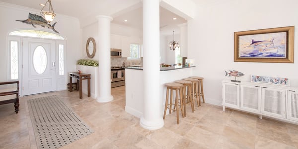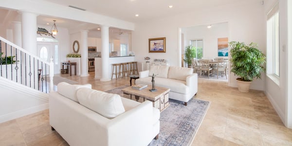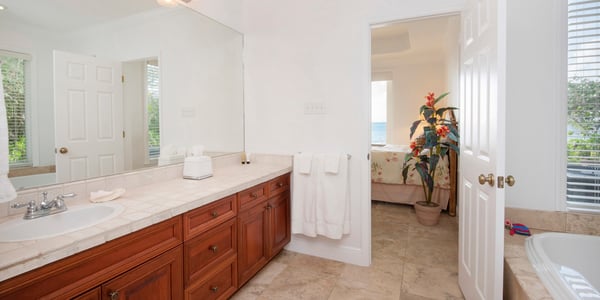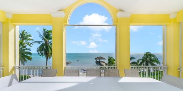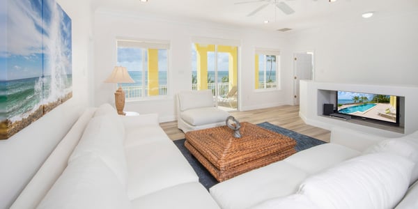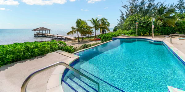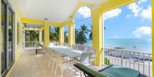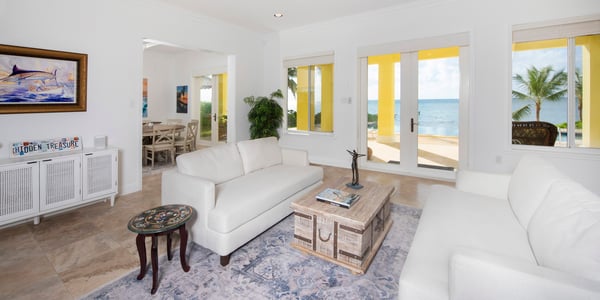 Welcome to Hidden Treasure, centrally located on the quiet southern coast. This luxurious five-bedroom beachfront estate sits on over 100 feet of sandy beach and iron shore with fabulous snorkeling and breathtaking sunrise views of tranquil Frank Sound. With over 5,500 sq. ft. of living space, this stately oceanfront villa features a private vanishing-edge swimming pool, outdoor fire pit, spacious interiors, and a propane grill. The gourmet kitchen comes equipped with modern stainless appliances, granite countertops, and a breakfast bar with seating. The formal dining area provides seating for 14. Cookware, flatware, glassware, and cutlery are all provided. In addition to seating four at the kitchen table, there is also an oceanfront breakfast nook that seats eight. The main five-bedroom villa may be rented alone for up to 14 guests, or 10 adults max. For an additional charge, you can upgrade to add the optional 1-bedroom guest house at any time to sleep a total of 18 guests, 12 adults max. The guest house is never rented out separately during your stay. Beach Notes The entire island is only 22 miles wide from west to east, so you are never too far from anywhere on Grand Cayman. The villas in the Cottage District on the southeast coast offer great reef-protected snorkeling with calm waters plus proximity to the island's best dive operators--Ocean Frontiers and Tortuga Divers. The beaches here tend to be a mix of ironshore and sand, so foot protection—fins or pool shoes—is recommended. General Grand Cayman Beach Notes All beaches in Grand Cayman are technically “public” since the Crown owns up to the high watermark. The shoreline quality behind your property may vary seasonally. Be advised that the beach or water entry behind your property may vary slightly from the images on our website due to shifting weather patterns. The next-door beach is also always available for your use. Ocean Debris and Sargassum Seaweed Beaches in Grand Cayman may also experience floating ocean debris and sargassum weed seasonally. Sargassum is a generally harmless floating seaweed that is largely seasonal in the summer. The owners do make efforts to remove heavy sargassum and will have the beach raked prior to your arrival. We try our best to work around mother nature.