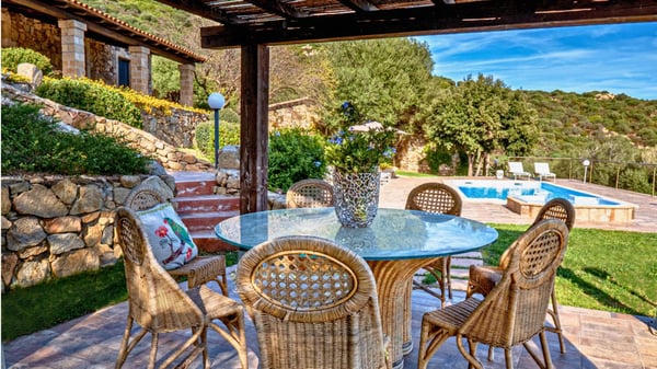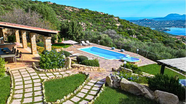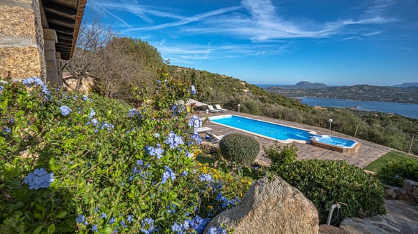 The Emerald Coast is a picturesque coastal region located in the northeastern part of the island of Sardinia. Known for its crystal-clear waters, white sandy beaches, and luxury resorts, it is a popular destination for tourists looking for a posh and exclusive vacation. The area is also home to beautiful landscapes, charming villages, and excellent dining options. It is a perfect place to relax, enjoy the Mediterranean sun and do some water activities. Villa Confida consists of a main villa and two annexes, surrounded by stunning natural beauty, and offers the perfect blend of comfort and elegance, making it the ideal getaway for those seeking for a relaxing and upscale holiday experience. With breathtaking views of the Mediterranean Sea and easy access to some of the most beautiful beaches, less than 10-minute drive away, this villa is the perfect place to unwind and make lasting memories. Whether you're looking to spend your days lounging by the pool or exploring the local culture, you'll find everything you need for the perfect vacation at this villa in Emerald Coast.