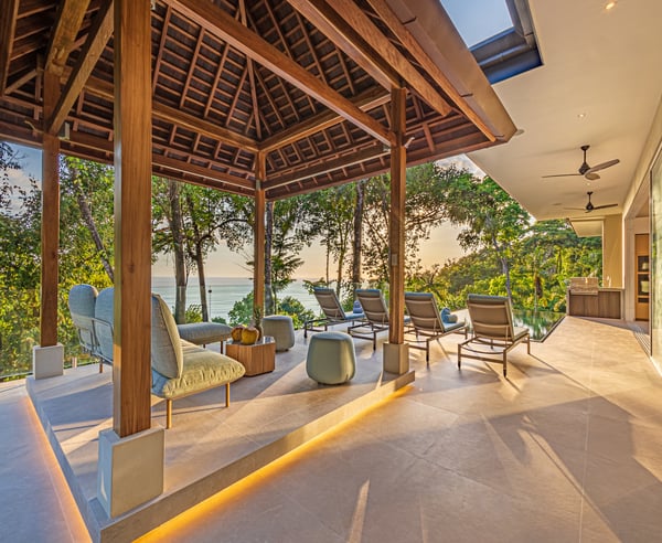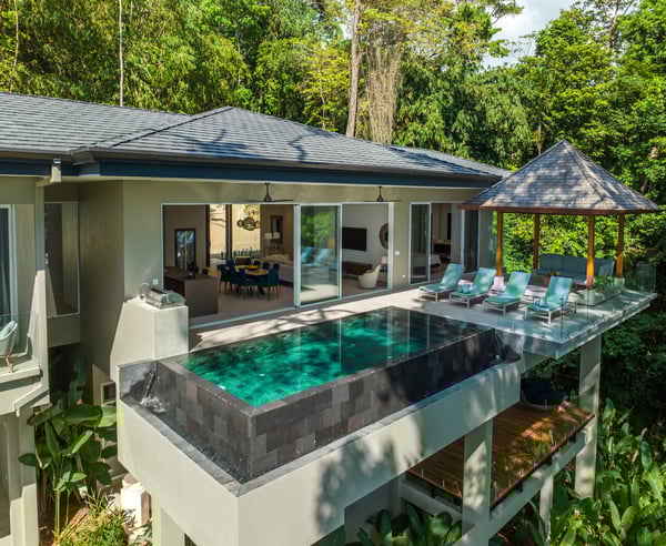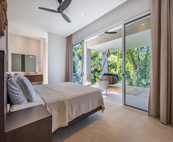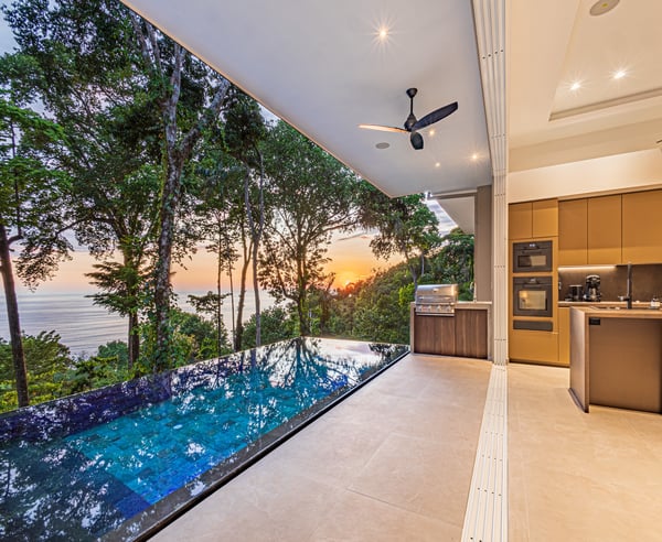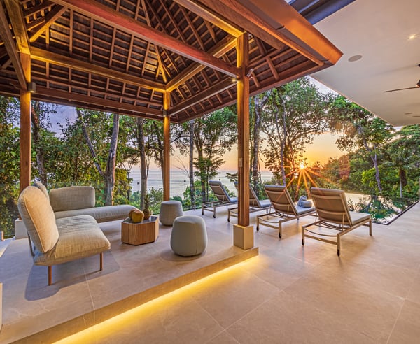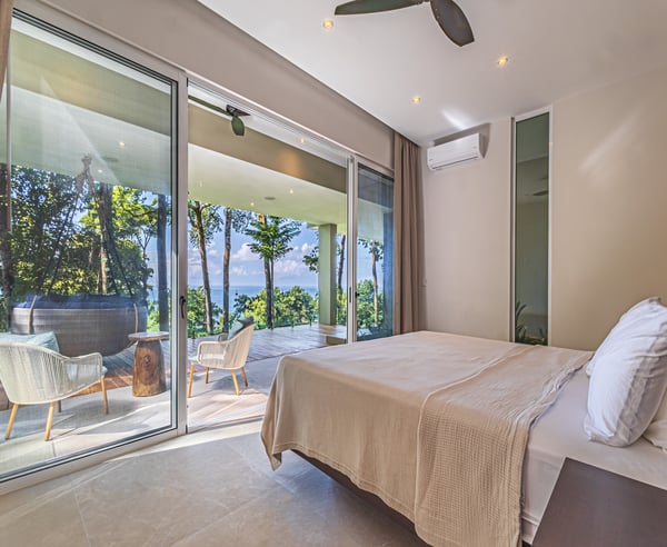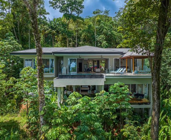 Villa Sueño – A Design-Led Private Retreat in Costa Rica’s Rainforest Perched like a luxury treehouse in the rainforest hills of Escaleras — between Uvita and Dominical — Villa Sueño is a fully serviced, architecturally designed private villa offering panoramic ocean views and immersive living in one of Costa Rica’s most exclusive regions. Combining the privacy of a residence with the refinement of a five-star boutique hotel, the villa is ideal for travellers seeking connection, wellness, and curated luxury. Designed by an Italian interior designer, Villa Sueño features four ocean-facing primary suites — each with an en-suite bathroom and a private terrace overlooking the jungle and sea. The villa’s open-plan living space, chef’s kitchen, and seamless indoor-outdoor flow create a refined and peaceful atmosphere. Guests enjoy a complete luxury hospitality experience, including: – Daily housekeeping – Dedicated property manager – Optional private chef services – Tailored experiences including yoga, surfing, waterfall hikes, wellness treatments, and more – Daily wildlife encounters with toucans, monkeys, and sloths – Walking-distance access (2 minutes) to fine dining, artisan coffee, a curated wholefood store, and spa — all while fully secluded within a gated, guarded enclave With an infinity pool, Balinese yoga deck, air-conditioned gym, tropical gardens and orchard, Villa Sueño is ideal for: – Wellness & yoga retreats – Design-conscious travellers – Luxury family getaways – Milestone celebrations – Chef-curated holidays Whether seeking stillness or stimulation, every stay at Villa Sueño is curated to your rhythm — delivering a life-affirming experience in a setting of natural beauty and calm.