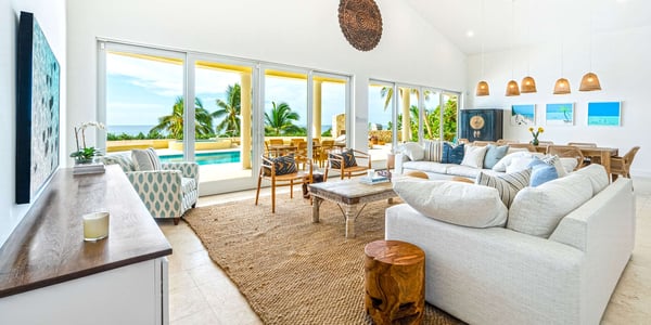 Welcome to Turtle Beach, a luxury, open-concept 4-bedroom private villa on the oceanfront in Spotts, just 10 minutes from the airport. Turtle Beach appeals to seasoned travelers looking for a classic oceanfront villa with contemporary decor, resort-like amenities, and enhanced privacy. Elevated with tall masonry walls, Turtle Beach maintains its privacy from the nearby Spotts Beach, famous for swimming with sea turtles. Contemporary and modern, the home is also wired with fiber-optic internet, perfect for remote working professionals. The villa’s sandy beachfront spans 100 feet with excellent shallow snorkeling within a reef-protected coastline. Perfect for walks and beachcombing, and one of the few villas that offer barefoot water entry. As a marine environment, we still suggest water shoes for protection. Guests of all ages will enjoy the private pool and spa (spa heat provided complimentary Nov. 15 - Apr. 15; US$25/day for other months). Sunbathers will find plenty of chaise lounges and a sunbed on which to soak up the Caribbean sun. Palm trees within the pool deck offer shade. Inside, Turtle Beach blends modern design with spacious gathering spaces that flow seamlessly through a wall of sliding glass doors into the outdoors. The kitchen flows into the great room and is equipped with modern appliances and breakfast bar seating. Gorgeous ocean views may be enjoyed throughout the first floor. Each of the four-bedroom suites enjoys elevated ceilings and scenic ocean views. Spacious modern ensuite bathrooms for all. The oceanview twin and queen suites each have an outdoor enclosed rock-walled private shower. Guests will find plenty of room throughout the villa to spread out and relax in style. Beach access from the pool deck is via a pair of Moroccan-painted doors leading to a private path under a canopy of sea grape trees, out onto barefoot white sand. Centrally located in Spotts, Turtle Beach is easily accessible to two groceries, western beaches, Camana Bay, Seven Mile Beach, Grand Harbour, and all the top attractions Grand Cayman has to offer. Beach Notes While Grand Cayman is only 22 miles wide, some guests prefer to stay closer to town for day trips to Seven Mile Beach, only 15 minutes from the villa! Turtle Beach is only 10 minutes from George Town and the beaches on the west coast of the island. 5 minutes from the grocery store and convenient for chefs and personal services to cater to its guests. The villa enjoys a very sandy barefoot beach area with amazing views and excellent snorkelling out to the reef. Walk east to potentially interact with turtles swimming in the shallows! You will see others over at that beach to the east during the daylight hours. Seagrass entry from the shore into shallow waters gradually becomes swimmable once the water is deep enough. Perfect for kayaking. Guests need to be mindful that this is a marine habitat and should still wear pool shoes or fins for foot protection. General Grand Cayman Beach Notes All beaches in Grand Cayman are technically public, since the Crown owns up to the high watermark. The shoreline quality behind your property may vary slightly from the images on our website due to shifting tides and weather patterns. The next-door beach is also always available for your use. Ocean Debris & Sargassum Seaweed Beaches in Grand Cayman may also experience floating ocean debris and sargassum weed seasonally. Sargassum is a generally harmless floating seaweed that has increased in frequency over the years during the summer. Our owners do make efforts to remove heavy sargassum and will have the beach raked before your arrival. We try our best to work around mother nature.