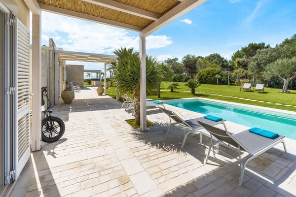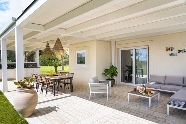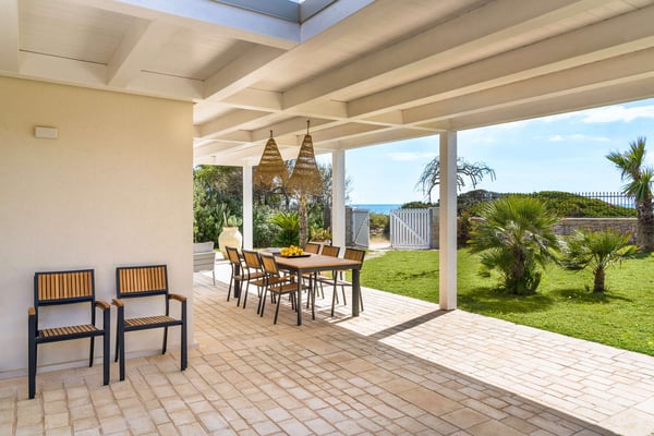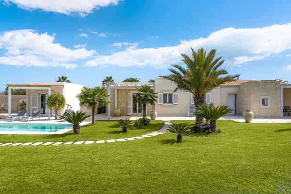 Azulea is an exclusive seafront property in Porto Ulisse, on the southeast coast of Sicily. Located just a few steps from a lovely sandy beach, this villa is surrounded by a well-tended garden with lawn and features large (partly covered) terraces and a beautiful swimming pool with sun terrace. Recently restored, Azulea offers welcoming, well-proportioned rooms, furnished with taste and equipped with all modern amenities, such as air conditioning/heating (heat pumps), wi-fi, washer-dryer, dishwasher, smart TV, outdoor kitchen, bbq and small wine cellar. Set on one level, these cozy interiors include a large living area with an open-plan kitchen, a laundry room and four double bedrooms, all with en-suite shower. Ideal property for those seeking sun, sea and relaxation, Azulea is also an excellent base to reach by car the charming fishing villages of Sampieri, Donnalucata, Marzamemi, and Portopalo di Capo Passero and the baroque towns of Ispica, Modica, Noto, Syracuse, Scicli and Ragusa Ibla. CIN: IT088005C2SSCMCJSG