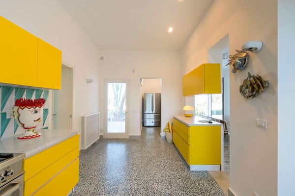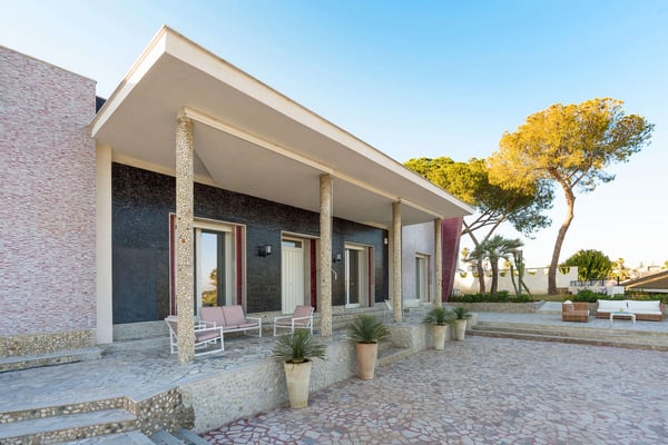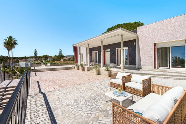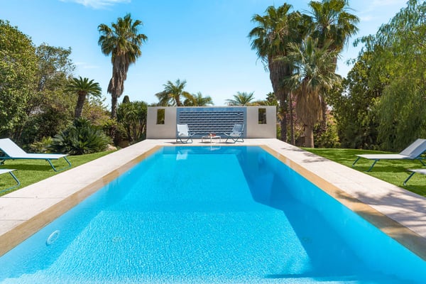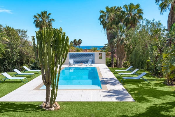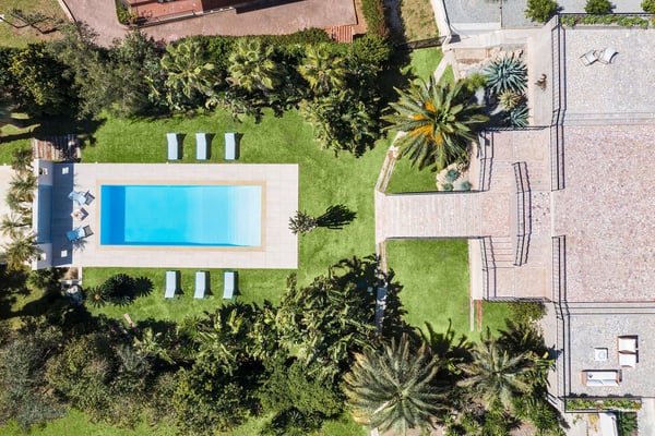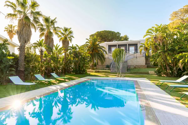 La Belle is a wonderful villa with a swimming pool in Fontane Bianche, a popular seaside resort south of Syracuse. The villa is just 200 meters from a lovely sandy beach and boasts an amazing overflow pool, surrounded by a spacious garden with palms, pines and Mediterranean plants. Its large, equipped terraces are the perfect spots to unwind while admiring this green oasis. Recently renovated and restyled by a renowned French interior designer, villa La Belle preserves its original style and character and features large, bright rooms. The cozy, well-proportioned living space blends perfectly the retro style décor with refined design pieces and colorful accents. In addition to the dining room and the lounge with TV, the living area includes a fully-fitted kitchen, a bathroom and a laundry room. The sleeping area – with five bedrooms and five bathrooms – is equally spacious and comfortable. The villa is equipped with all modern amenities, such as air conditioning, heating, Wi-Fi, a washing machine, dryer, two dishwashers, oven and an espresso coffee machine. Being conveniently located, this property allows for easy access to the most beautiful places of the south-east of Sicily, such as Syracuse, Marzamemi, Noto – the capital of the Sicilian baroque, Modica, Scicli and Ragusa Ibla, the nature reserves of Vendicari and Cavagrande. CIN: IT089017C2UE33BDWI