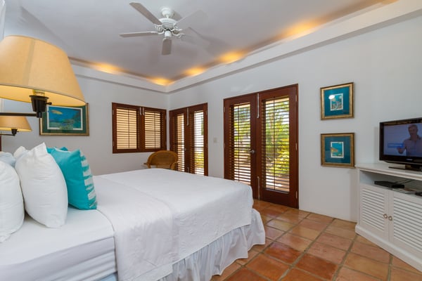 Coconut Palm Villa is a luxurious three-bedroom oasis literally steps away from one of the world’s best beaches – Meads Bay. This exceptional villa is within easy walking distance of many of the West End’s gourmet restaurants, five-star hotels, and spas. Coconut Palm Villa is undoubtedly one of Anguilla’s most conveniently situated vacation homes. Its exceptional location is just steps away from stunning Mead’s Bay Beach – two miles of glorious powder white sand – where lounge chairs and umbrellas for the exclusive use of the villa’s guests are available. Mead’s Bay is also the home of many of Anguilla’s most popular restaurants – including Ocean Echo, Blanchard’s Beach Shack, Jacala and Straw Hat, and the five-star Malliouhana by Auberge Hotel. The villa is also within a five-minute walk of the pristine and deserted Long Bay and a five-minute drive from other popular west-end beaches like Barnes Bay, Shoal Bay West, Maunday’s Bay, and West End Bay. There is a large supermarket 3 minutes' drive away. This charming contemporary Caribbean villa offers guests exceptional privacy and space as it is situated in half an acre of glorious tropical gardens and boasts a pretty, private pool and luxurious sunbathing terrace. The architect-designed property is luxuriously furnished and benefits from partial sea views, vaulted ceilings, comfortable contemporary furniture, and great natural light. Complimentary beach chairs/umbrellas and tennis! Twin Palms Villas' guests benefit from dedicated lounge chairs and umbrellas reserved exclusively for them on a prime spot on Mead’s Bay beach. Villa guests are also able to enjoy complimentary use of the Tennis Courts at nearby Carimar Beach Club. Three air-conditioned bedrooms (two king/one twin) all with en suite bathrooms, private balconies, and ceiling fans. Spacious poolside and rooftop terraces with partial sea views and umbrellas. Living room with TV. Indoor and outdoor dining, a fully equipped kitchen, and outdoor showers. Coconut Palm can be combined with its sister property two-bedroom Beach Palm, to create a spacious five-bedroom retreat, “Twin Palms Villas”, accommodating up to ten guests. Both villas are situated in a large, walled estate where mature gardens, clever landscaping, and walkways separate and provide privacy for the two properties.