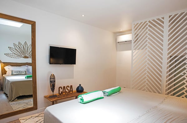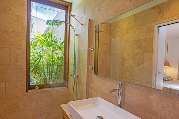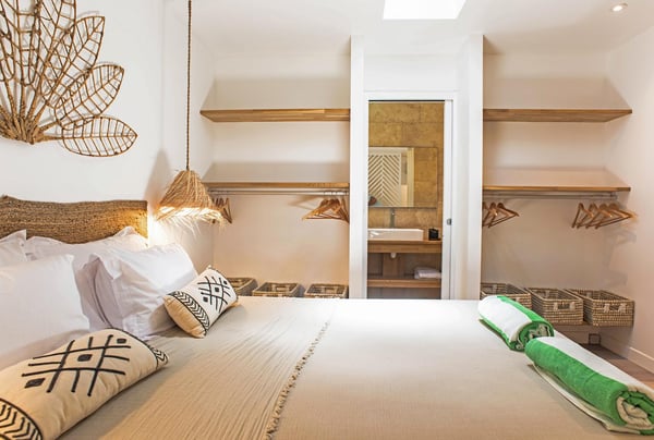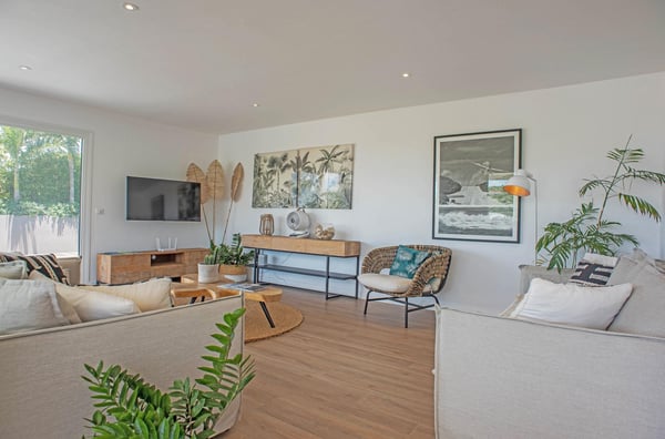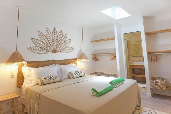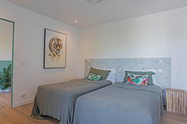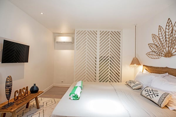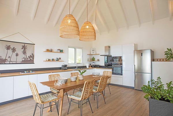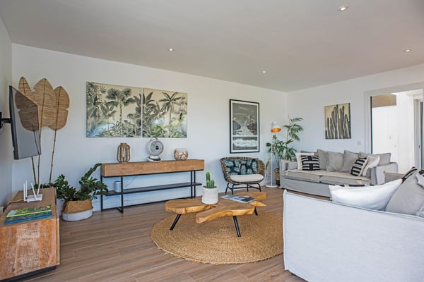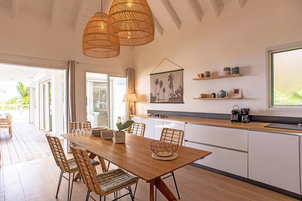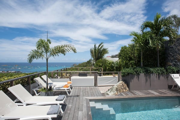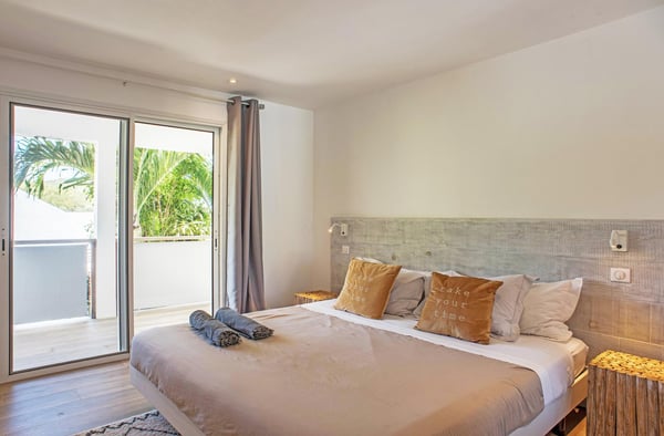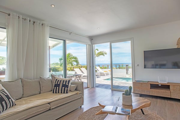 This spacious villa has three bedrooms and three bathrooms, offering comfortable and private space for guests. You can enjoy the heated pool while admiring the panoramic view of Gustavia and the sea. The terrace surrounding the pool is equipped with comfortable sun loungers, allowing you to bask in the sun and soak up the peaceful ambience. Villa Remi is decorated in a natural style, featuring organic materials such as wood, stone and rattan. Soothing neutral tones create a relaxing and inviting atmosphere in which to unwind and recharge. The villa enjoys a privileged location close to Gustavia town center, where you’ll find a host of restaurants, boutiques and lively bars. You can easily explore the city and enjoy St. Barthélemy’s lively nightlife. What’s more, the beaches of Public and Corossol are also nearby, giving you a quick trip to the warm sands and a dip in the island’s crystal-clear waters. After a day at the beach, you can return to Villa Remi and relax in the privacy of your own oasis. Perfect for a stay with family or friends.