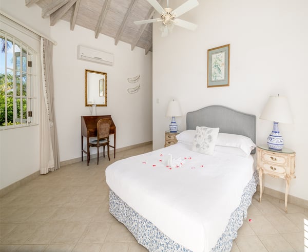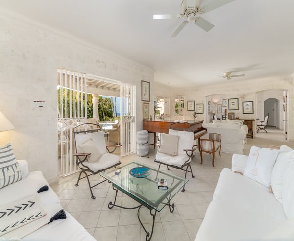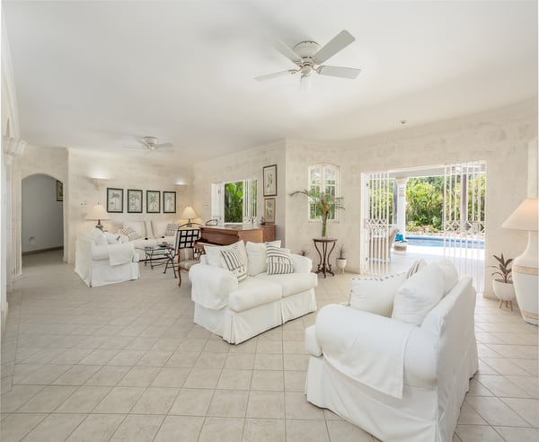 Guests staying within the world famous Sandy Lane Estate will have complimentary access to all Clubhouse facilities including beach chairs, umbrellas and tennis courts. Nestled within the prestigious Sandy Lane Estate in Barbados, Villa Pappagallo is more than just a villa, it is a private tropical sanctuary, artfully combining timeless elegance with the vibrant beauty of island life. Set on 1.5 acres of lush, landscaped gardens with waterfalls, ponds, and majestic palms, this exquisite five-bedroom estate invites you to unwind in serene luxury. From the moment you arrive, a warm welcome awaits, complete with a refreshing drink and revitalising, cool towels. Step into the grand coral stone reception lounge and feel immediately at home, surrounded by soft, sophisticated furnishings and a gentle island breeze. The villa boasts five expansive ensuite bedrooms, a newly fitted designer kitchen with premium Smeg appliances, a stylish TV room with streaming capabilities, and an indoor dining space designed for elegant gatherings. Crowning the villa is the Master Suite, a private sanctuary complete with a generous covered balcony that unveils breathtaking panoramic views over the pool deck, stretching toward the shimmering sea and endless horizon. This elegant space offers the perfect setting to unwind, sunbathe in privacy, or toast the day’s end with a sunset cocktail. On the ground floor, four additional spacious ensuite bedrooms promise comfort and serenity. Each features walk-in wardrobes and luxuriously dressed beds with plush mattress toppers and crisp, cool cotton linens. Arranged thoughtfully across both wings of the villa, each side offers a King bedroom with direct access to the pool deck, paired with a second bedroom that can be configured as twin or super-king, ideal for families or groups seeking flexibility and togetherness. Every bedroom is equipped with air conditioning, ceiling fans, hairdryers, and USB charging ports, ensuring modern convenience blends seamlessly with timeless comfort. Cots and additional single beds can be arranged upon request to accommodate every need with ease and elegance. The expansive pool terrace features a generous 15-meter pool, a separate Jacuzzi, and abundant space to bask in the sun or relax in the cool shade throughout the day. Elevated gently on a coastal ridge, the villa enjoys the added luxury of a refreshing breeze.