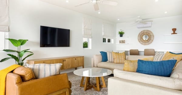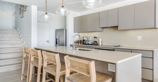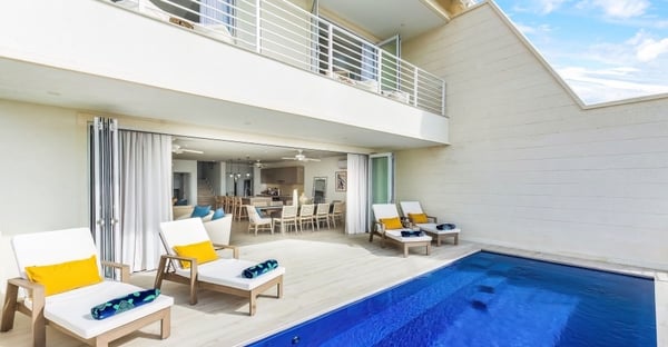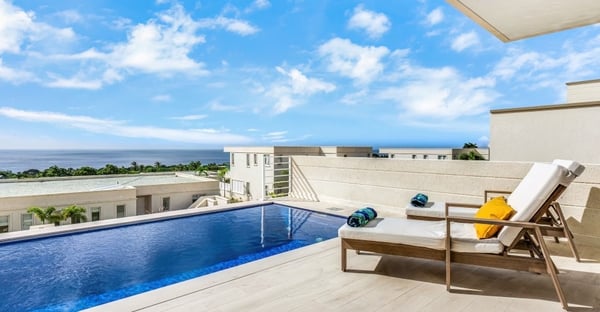 Royal Westmoreland is one of the Caribbean's finest luxury golf communities. With the $10 per person per day fee, guests will have access to the golf course ($), tennis courts ($), Club House ($), beach facilities at Mullins Beach Club ($). Located in the private gated community of Westmoreland Hills, a stone’s throw from the Royal Westmoreland Golf Course and the white sand beaches of the West Coast of Barbados, No. 40 Westmoreland Hills offers stunning ocean views and magnificent sunsets, making it the perfect vacation getaway for you and your family. No. 40 Westmoreland Hills is a 3,600 square feet semi-detached 2-story villa' The floor plan consists of four bedrooms and four bathrooms, a large, fully airconditioned, open plan living/dining/kitchen/office area, storage and rec room basement, and a 23-foot fiberglass pool. The interior of the villa has been professionally designed and outfitted. No detail has been overlooked in the furnishing and outfitting of the villa.