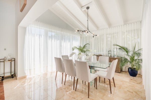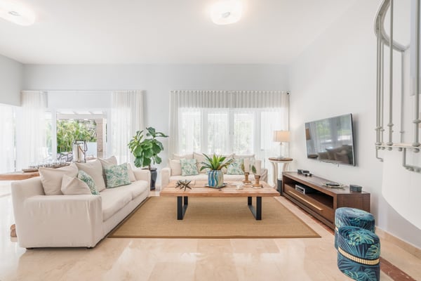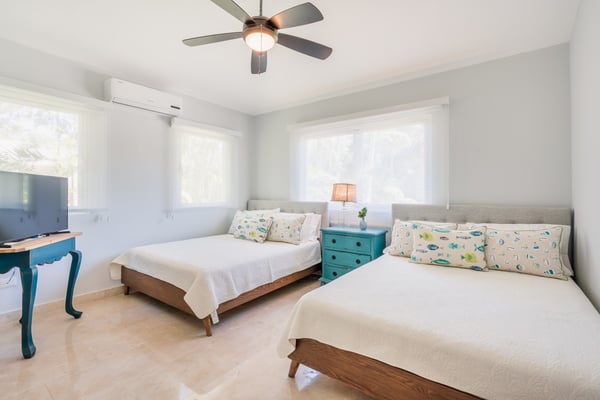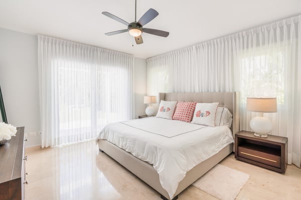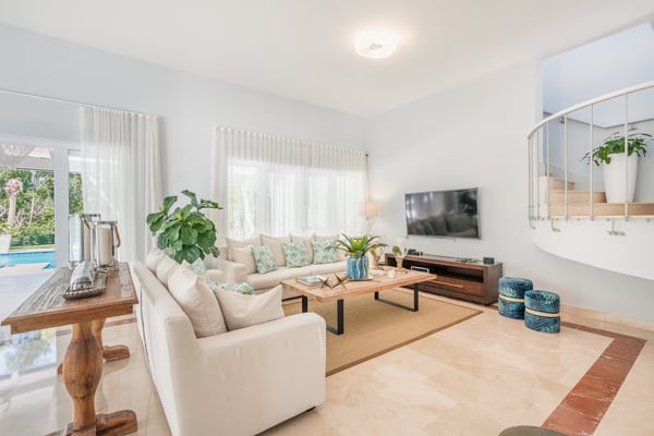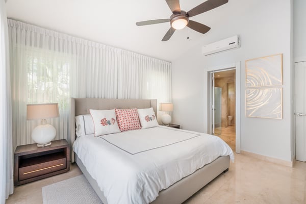 Guests staying within Puntacana Resort & Club will have access to all resort amenities and facilities. Resort amenities and facilities include two golf courses ($), two beach clubs ($), Six Senses Spa ($), restaurants ($), bars ($) and tennis centre ($). A four-bedroom villa in the community of Tortuga, Punta Cana Resort & Club is a luxurious and spacious vacation home situated in one of the most exclusive and scenic locations in the Dominican Republic. This villa is designed to provide a comfortable and relaxing stay surrounded by lush greenery. Upon entering the villa, guests are greeted with an open-concept living area that features large windows and high ceilings to let in natural light. The living area is tastefully decorated with plush sofas and armchairs, creating a warm and inviting atmosphere. The villa boasts five beautifully appointed bedrooms, four of them with their own en-suite bathrooms. The bedrooms are furnished with comfortable king-size or queen beds, quality linens, and ample closet space. The spacious master suite features a king-size bed, a walk-in closet, and a large en-suite bathroom with a Jacuzzi tub and a separate shower. One of the villa's most exceptional features is its outdoor living space. A large covered terrace with a comfortable seating area and BBQ grill provides an ideal space for enjoying the tropical climate. The villa also has a private swimming pool surrounded by lush greenery, perfect for relaxing in the sun and enjoying the Caribbean breeze.