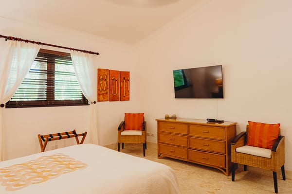 Guests staying within Puntacana Resort & Club will have access to all resort amenities and facilities. Resort amenities and facilities include two golf courses ($), two beach clubs ($), Six Senses Spa ($), restaurants ($), bars ($) and tennis centre ($). Discover the serene beauty of Tortuga B-38, a charming villa nestled in the tranquil ambiance of Puntacana Resort & Club. This idyllic retreat, situated on a peaceful street, is just a few minutes' stroll from the crystalline ocean waters. Its convenient location, a mere 15 minutes from Puntacana International Airport and the vibrant Puntacana Village, offers easy access to a delightful array of restaurants and shops. Tortuga B-38 is the quintessential destination for relaxation and rejuvenation on the finest island in the Caribbean. The villa itself is a haven of tranquility, inviting you to unwind in its beautiful private garden and bask in the luxury of its exclusive pool. Every detail of Tortuga B-38 is designed to provide the utmost in comfort and relaxation.