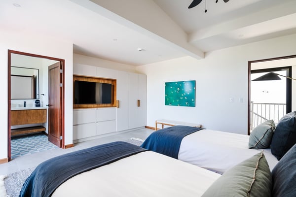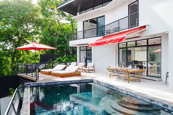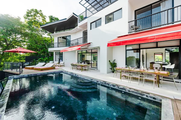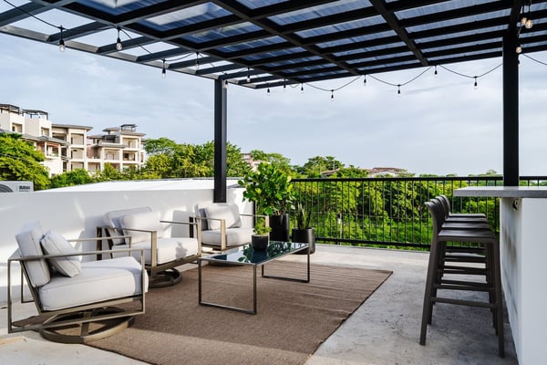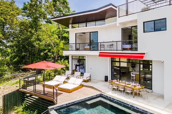 Construction is taking place nearby and may create some noise issues. Contact a Rental Escapes villa specialist for more information about how this may impact your stay. Welcome to Cabana de Playa, the villa offers the perfect downtown location, just a short 15 minutes walk from Tamarindo Beach and attractions. With a private rooftop featuring stunning views, a poolside terrace for relaxation, and two private entrances, it’s ideal for two families wanting to enjoy time together while maintaining their privacy. Standout Features: • A private rooftop with beautiful views of both sunrise and sunset • Large pool and spacious terrace, ideal for relaxing or enjoying time with family and friends • Just minutes from cafes, restaurants, shops, and local attractions • Close to farmers markets, craft fairs, surf lessons, and sunset horseback rides