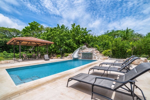 Welcome to Casa Bonita Beach, this home is your perfect retreat, combining a private pool with a fun slide and a prime location just a 5-minute walk from the stunning Playa Bonita, nestled between Playa Avellanas and Playa Langosta. Standout Features: • Private pool with a slide for endless fun • Short 5-minute stroll to the breathtaking Playa Bonita • Visits from playful howler monkeys in the surrounding trees • Close to JW Marriott for dining and an exclusive on-site beach club • Golf cart rentals to explore nearby spots with ease • Parking space for 4 to 6 cars • Exclusive access to a beautiful beach club just minutes away
