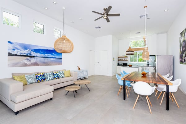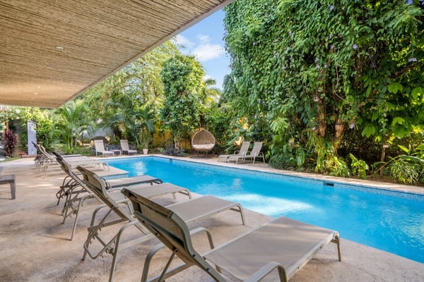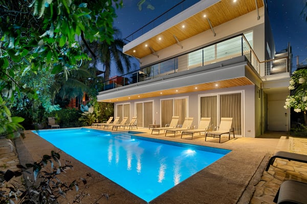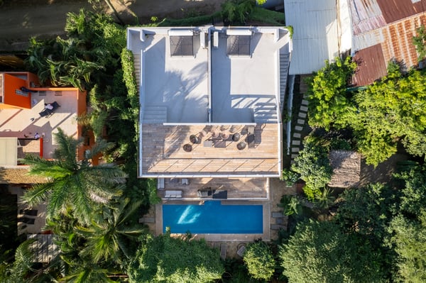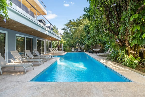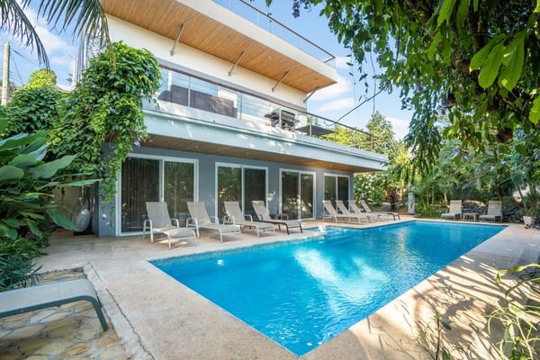 Welcome to Villa Motmot, the villa has a green soul and an exciting story to tell. The owners have supported rainforest protection for over 30 years, and in 2020, their goal with Motmot was to create a low carbon footprint building. Located in the heart of Tamarindo, the ecological villa offers 3 terraces, an oceanview rooftop, saltwater pool, and a biodiverse garden, all just a short walk from beaches and attractions.