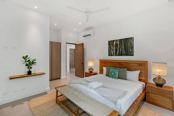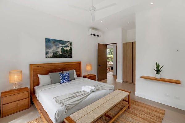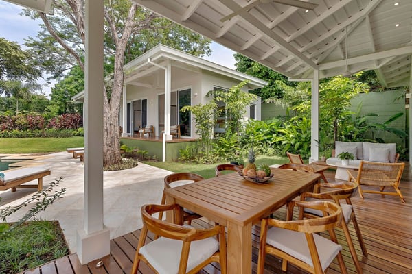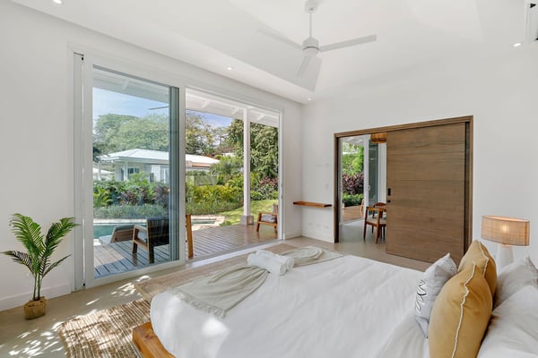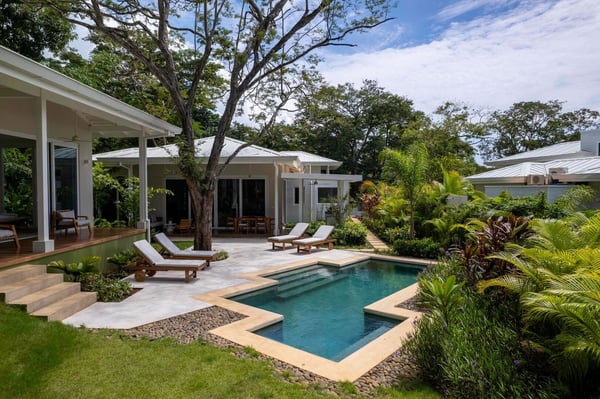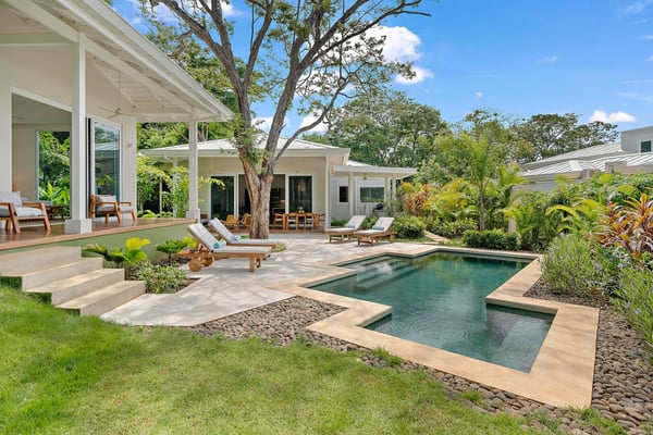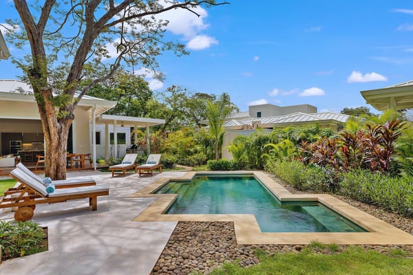 Nearby construction may result in noise disturbances. For further details on how this might affect your stay, please reach out to a Rental Escapes villa specialist. Welcome to Casa Quebracho, this gorgeous villa is located in an eco-friendly gated community, with modern comforts, peaceful surroundings, and a magical garden that comes alive at night with stunning lighting—all just minutes from Tamarindo Beach and downtown. Standout Features: • Situated in a secure, gated community. • A beautiful garden that glows with magical lighting at night. • Spacious rooms, enough to feel comfortable. • Main house, poolside suites, and a private suite above the driveway. • Just a 10-minute walk to the beach. • Beach chairs to take along for your beach day. • Parking for 2 cars (indoor) and 1 (outdoor).
