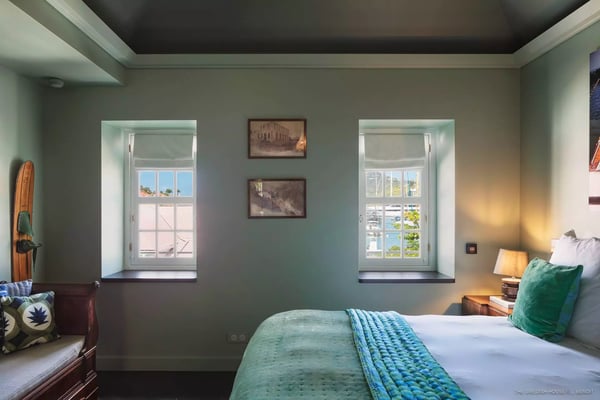These days, it is not so easy to find a historic place to stay in St. Barth. Often, that is a good thing. But for guests who crave a bit of history and a more personal connection to the island, there is the newly completed apartment, Swedish House. The two-bedroom apartment is in Gustavia. It is one of the few remaining historical buildings in town, also known as La Maison Suédoise. The luxury rental property is part of the Lacour family estate, which is comprised of several uniquely designed suites and apartments around a tropical garden in the heart of the city. This puts it within easy reach of Gustavia’s boutiques, bakeries, restaurants, and nightlife. Shell Beach is just around the corner. Better yet, when you stay at the Swedish House, we are ready to create all sorts of wonderful memories, everything from private wine tastings to windsurfing lessons. Of course, you still enjoy plenty of privacy. The vacation apartment has a separate entrance from the office. They share a courtyard garden with coconut palms and some fruit and flowering trees. The Swedish House also has its own private balcony—one of the few from a bygone era—overlooking the town and the harbour. In terms of ambience, the apartment has a French colonial style with modern conveniences, in keeping with the historical heritage of the building. The decor incorporates selected unique pieces of furniture, both antique and contemporary, and Slim Aarons' photography. There are parquet floors throughout, and a set of 19th-century theatre crystal chandeliers adorn the living room. That living room is the heart of the apartment. It includes a sitting area with a bespoke library and a Sonos sound system, a colonial-style desk, a custom Devol Kitchen with Gaggenau appliances, and a dining area. In case you get thirsty, there is a reverse-osmosis system for drinking water (no more plastic waste!) and an on-demand refillable wine refrigerator. The two bedrooms lie on either side of the living room. Each has its own ensuite bathroom and built-in wardrobes. Each bedroom and the living room have "Frame" televisions with Apple TV and Netflix. The entire apartment is air-conditioned. For larger groups, it can be rented together with Greenhouse, Botanist and Alchemist, creating a compound with five bedrooms in total.