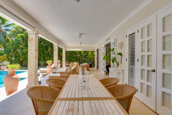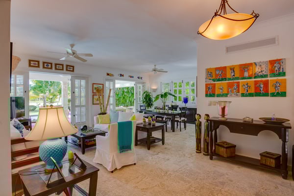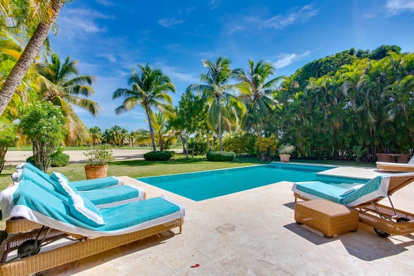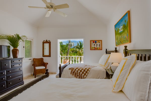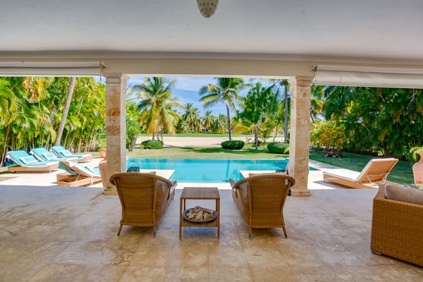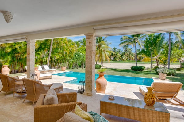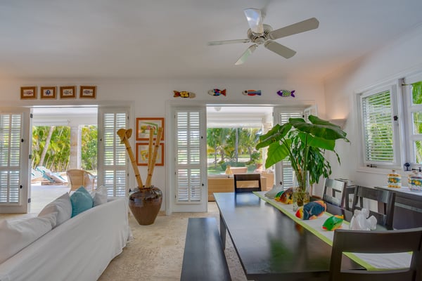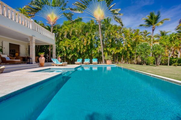 Guests staying within Puntacana Resort & Club will have access to all resort amenities and facilities. Resort amenities and facilities include two golf courses ($), two beach clubs ($), Six Senses Spa ($), restaurants ($), bars ($) and tennis centre ($). Punta Cana locally and internationally is synonymous of adventure, leisure, relaxation and luxury. Few are lucky enough to access and experience this last concept in any of the properties found within Punta Cana Resort & Club, a unique resort in the entire Caribbean, recognized for its excellence and high quality of services. For those guests who have in mind a trip with family or friends, this beautiful four-bedroom property, modern and with unique views to the golf course, is the ideal space, not only to have an incomparable rest but also to be close to the best beaches throughout Punta Cana. From the moment you enter through the front door you can appreciate the property was designed to have amazing experiences. From the kitchen with maroon marble countertops contrasting with the white mantle that hangs over the living room, where the black wooden table for eight diners decorated with Caribbean fishes expects to have the most delicious dishes made by the maid. The living room was conceived from minimalism with comfortable armchairs next to the wooden shutters that give access to a voluminous and evergreen garden with exuberant views of the golf course and the pool. The exterior features a furnished patio and an outdoor dining room. The ground floor is completed with one of the four rooms. Up the stairs there are the three remaining rooms next to a small living room with a television to watch your favorite series next to a desk and a large terrace with sun loungers and privileged views of the golf course. Located within the Punta Cana Resort & Club, the property has access to lots of adventures and fun! Use the electric golf cart for 4 people (included in the rate) to move around the premises and access La Cana Beach Club, tennis courts or one of the two golf courses.