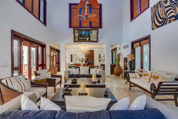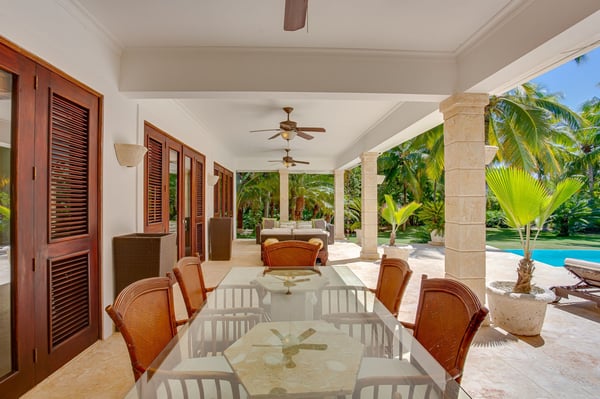Guests staying within Puntacana Resort & Club will have access to all resort amenities and facilities. Resort amenities and facilities include two golf courses ($), two beach clubs ($), Six Senses Spa ($), restaurants ($), bars ($) and tennis centre ($). Set in the Arrecife area of the world-famous Punta Cana Resort & Club, this classic yet newly renovated villa is an expansive space with a long list of amenities in addition to its access to the resort's many privileges. The property is enclosed in the exclusive La Cana neighborhood providing seclusion and privacy to its guests and it's only a 5-min walk from La Cana Beach. At the heart of this four-bedroom masterpiece is the semi-circular pool terrace. Framed in native stone and offering several sun decks, it is an ideal spot to catch some rays or even recline and enjoy hours of stargazing. With two-story balconies around the entire property, everyone has a view of the pool and gardens. There are many al fresco dining and lounging spots in addition to more formal areas beneath the verandah. The interiors are just as grand as the exterior spaces and feature a cathedral-ceilinged living room and lounge, a massive gourmet kitchen and a formal dining room. The bedrooms include two upper-level suites and two ground-floor suites. All open to terraces or balconies and range in size from a master suite with king bed and sitting room to the dual queen suites with large en-suite baths.