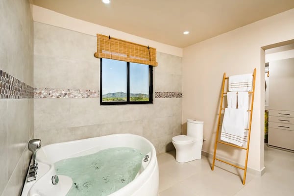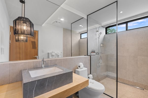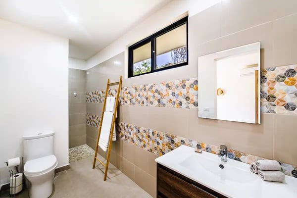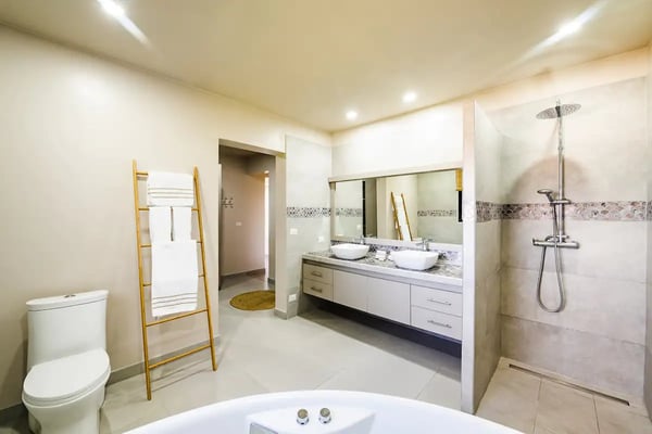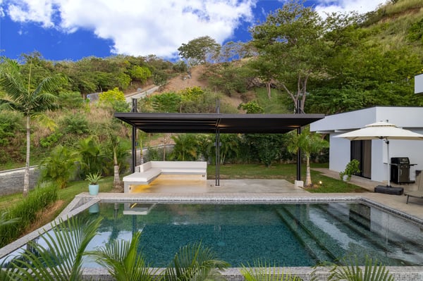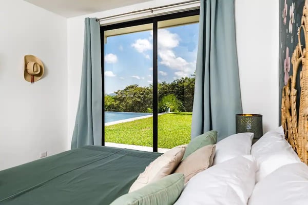 Nestled within a secure gated community, imagine this luxury home just a three-minute drive from both downtown and the beach, so location-wise, it's a winner. As soon as you step inside, you're hit with all this natural light, and yeah, it's fully air-conditioned – no sweat, literally. The kitchen's decked out and there's this big dining table for all the feasting you can handle. Then, the living room's the spot for kicking back – smart TV included for those lazy days. Now, the best part? Slide open those doors and boom! There's this massive covered terrace that overlooks an infinity pool with a killer view of the valley. I'm talking serious relaxation vibes. When it comes to sleeping, they've split things up. One side's got this dreamy master bedroom with a huge dressing room and a bathroom that's a mini spa – shower, tub, the whole deal. On the flip side, there are three more bedrooms, each with its own bathroom equipped with sleek Italian showers and toilets. Villa Lux is comfy, fancy, and screams vacation without losing the homely feel. Close to everything you need, but once you're chilling by that pool or just hanging on the terrace, it's like your own private getaway. Villa Lux is currently a 4-bedroom house but will be remodeled in September and October 2024 to become a 7-bedroom house starting on November 1st, 2024.