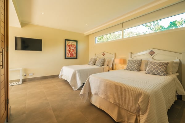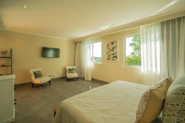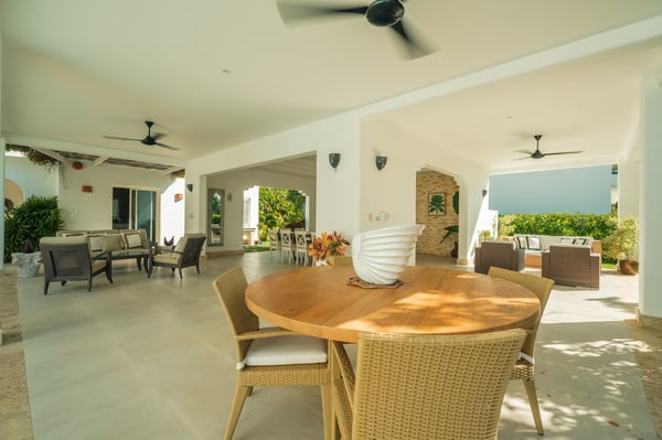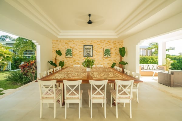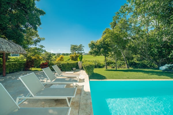 Guests staying within Puntacana Resort & Club will have access to all resort amenities and facilities. Resort amenities and facilities include two golf courses ($), two beach clubs ($), Six Senses Spa ($), restaurants ($), bars ($) and tennis centre ($). Welcome to Hacienda B25, a captivating fusion of Moroccan elegance and Caribbean charm. Within the pristine white walls of this unique six-bedroom, six and a half-bathroom villa in the Hacienda community of Puntacana Resort & Club, a dedicated service staff is committed to fulfilling your every dream and desire. Situated alongside the golf course, Hacienda B25 treats you to breathtaking sunset views from its private pool. Outdoor lounges, spacious bedrooms, terraces, and an expansive garden with lush landscaping create an inviting atmosphere, meticulously curated to celebrate the Caribbean and resort lifestyle while preserving its distinctive Moroccan allure.