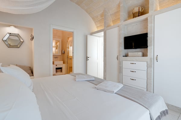 Immerse yourself in the captivating allure of Apulia, a destination beloved by locals and global adventurers alike. Explore Ostuni, renowned as the "White City," where sun-kissed whitewashed buildings radiate under the Mediterranean sky. Wander through the enchanting streets of Alberobello, where whimsical trulli houses evoke a sense of magic from bygone eras. Marvel at the baroque elegance of Martina Franca, a town steeped in rich history and architectural splendor. For those craving sun and sand, the pristine beaches of Savelletri offer a blissful retreat. Amidst this picturesque landscape, we extend a warm invitation to Brezzablu, nestled in the tranquil embrace of the Itria Valley. Here, amidst serenity and fresh air, this luxurious rental promises an unforgettable escape from the everyday hustle…