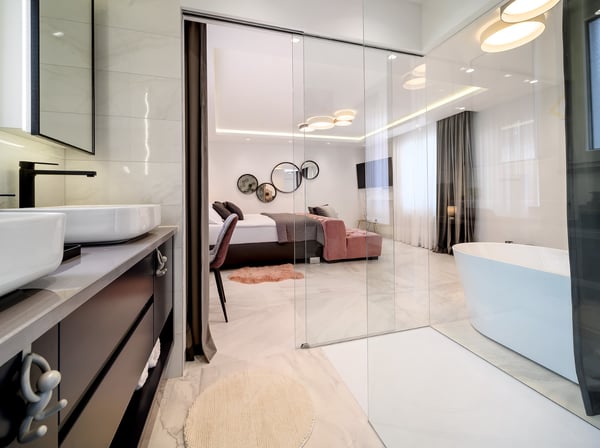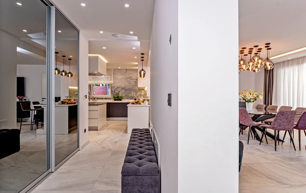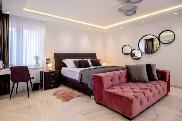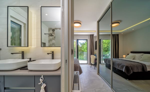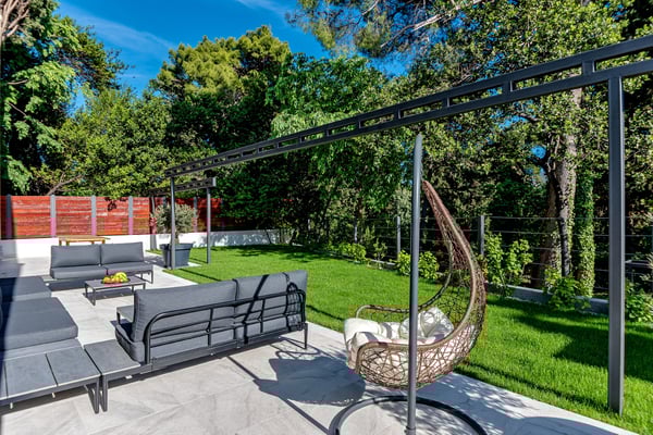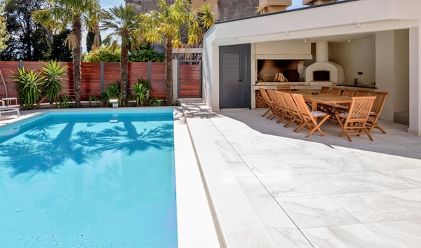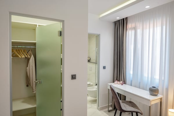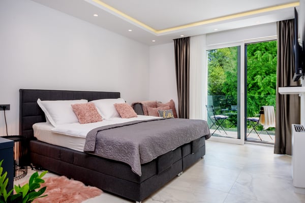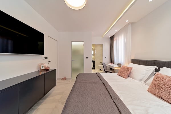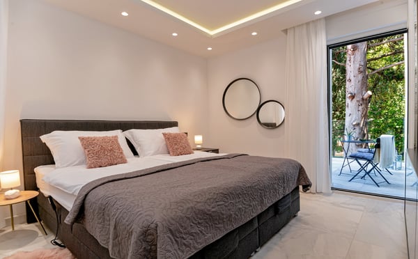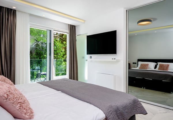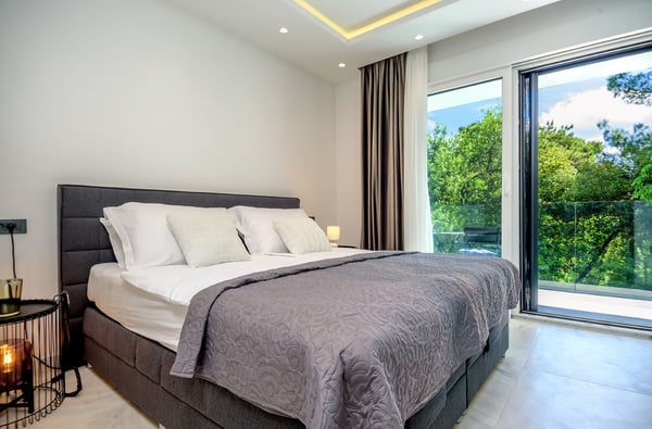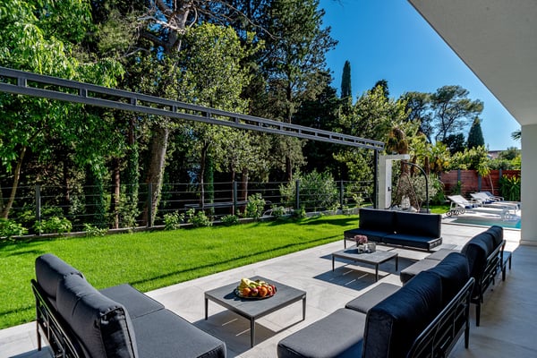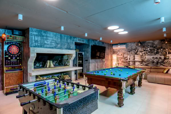 Luxury Villa Nobile Split with heated pool with massage pumps (50 m²), Jacuzzi, gym and tennis court is a new and modern villa for vacation and rent located in Kastel Stari, a suburb of Split. This pet-friendly villa is only 18 km away from the center of the tourist city of Split, and from the sea and beautiful pebble beaches, it is separated only by a short forest road of only a 1-minute walk. Town Kastela is specific because of the fact that it developed around 7 settlements (Kaštel Štafilić, Kaštel Novi, Kaštel Stari, Kaštel Lukšić, Kaštel Kambelovac, Kaštel Gomilica and Kaštel Sućurac) or around castles. Each village has its own particularity merged into the character of this part of the Mediterranean. It is characterized by an excellent offer of nightlife (concerts of classical, brass music ...), various sports activities, cultural events, beautiful beaches and turquoise blue sea, a large selection of beach bars. The castles offer a good time, rest and fun for all ages. Also, only a few minutes drive is needed to visit the tourist and culturally rich city of Split, which is a great advantage. Overlooking the lush greenery and the blue Adriatic, this wonderful Croatian villa is the perfect spot for a truly remarkable stay filled with serenity. Built with love for every detail, the luxury villa Nobile with a pool can accommodate up to 10 persons, comfortably pampered in 5 bedrooms, all with en suite bathrooms. The fabulous living room is designed for complete relaxation overlooking the wonderful Dalmatian nature. The modern, fully-equipped kitchen with the designer dining room is the guilt-free zone for delicious adventures. In addition to the living room, there is a children's playroom. On the ground floor of the villa, there is also a guest toilet. The ground floor and the first floor of this villa with sports amenities are connected by internal stairs. Treat yourself to private moments in the villa`s lounge and wellness area, amuse yourself with the gaming console or a round of pool, play billiard, make BBQ, dance to your favourite tune with a superb stereo system or get in shape on the tennis court – villa Noble is the synonym for both fun and placidity, just seize it following your feel and desire. The sweet self-indulgence continues on the fresh and fragrant Mediterranean air in front of this villa by the pebble, child-friendly beach. The carefully tended garden presents a lounge area where you can lie back and let all your worries be taken away by the gentle breeze. The swimming pool is heated, making it perfect for all seasons and surrounded by comfortable deck lounges for your long, lazy days under the sun. Here you can also enjoy an outdoor kitchen with a barbecue and a bread oven to enjoy and prepare various delicacies. In addition to the outdoor kitchen, you enter a hidden, really special, tavern with outlined walls in which the professional billiard table and table football take center stage. This space is decorated so that you can fully enjoy your time and relaxation. There is another kitchen and a Dalmatian grill. The tavern has a very interesting window overlooking the pool and another large, comfortable sofa. On the ceiling of the tavern, there is a projector screen that stretches and provides great enjoyment for watching matches or movies. Completely enclosed and absolutely fabulous, Villa Nobile is your peaceful retreat in the heart of the intriguing and energizing Dalmatian spirit.
