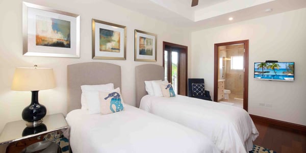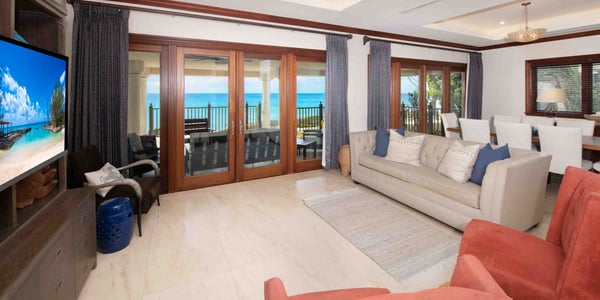 Welcome to Casa Luna, a luxurious seaside residential resort nestled along the coastline just south of Seven Mile Beach. Inspired by Tuscan architecture, Casa Luna blends modern luxury living with award-winning landscaping design with onsite horticulturist to create a secluded Caribbean oasis to call your very own. Casa Luna appeals to travelers who are considering a stand-alone luxury villa but desire more resort amenities, and those who are weighing the luxury and beach quality of a Seven Mile Beach condo but opt for additional privacy and fewer tourists. Casa Luna #14 is an upscale 4-bedroom oceanfront option to experience the best of both worlds--a spacious private residence with the convenience and resort amenities of a luxury oceanfront condo. This multi-level residence offers an open-concept design, with bedroom suites on the top and ground levels. The living, dining, and kitchen are located on the main level and open onto a private ocean veranda with lounging areas. Three of the four kin bedroom suites have breathtaking direct ocean views. The fourth bedroom has a beautiful Juliet balcony with a garden and partial sea views. The floor plan offers a great fit for both families, multiple couples, and executives. The spacious 5,032 square feet of living space offers a rare great value as well as room to spread out to make yourself feel at home. Only 5 of the resort’s 18 villas are currently available for short-term rental. Exclusive to villa owners and guests, the gated resort's elevated infinity pool + heated spa, fitness center, and barefoot sandy cove offer plenty of private seating and chaise lounges to enjoy at the beach, by the pool, and on the private patio. Beach Notes Casa Luna's barefoot sandy beach is lined with palm trees and sun loungers. Exclusive only to the owners and guests at Casa Luna, the beach here is never overcrowded. Unusual for a barefoot beach in Grand Cayman is the ability to snorkel and actually see marine life. Fish require corals, grasses, and rocks in which to live (and these items are not pleasant to walk on). Instead of rocks and grasses, Casa Luna's protective ironshore cove provides a haven for marine life. The larger condo resorts on Seven Mile Beach lack any underwater habitat for marine life resulting in fewer schools of fish. Given the tides and currents, you will want to exercise caution when swimming outside the protected cove. General Grand Cayman Beach Notes All beaches in Grand Cayman are technically “public” since the Queen owns up to the high water mark. The shoreline quality behind your property may vary seasonally. Ocean Debris & Sargassum Seaweed Beaches in Grand Cayman may also experience floating ocean debris and sargassum weed seasonally. Sargassum is a generally harmless floating seaweed that has increased in frequency in recent years. Although sargassum is an unsightly nuisance, it is largely seasonal in the summer. The owners make efforts to remove heavy sargassum and have the beach raked prior to your arrival. We try our best to work around mother nature.