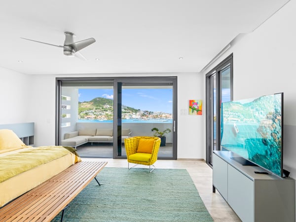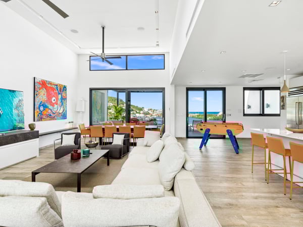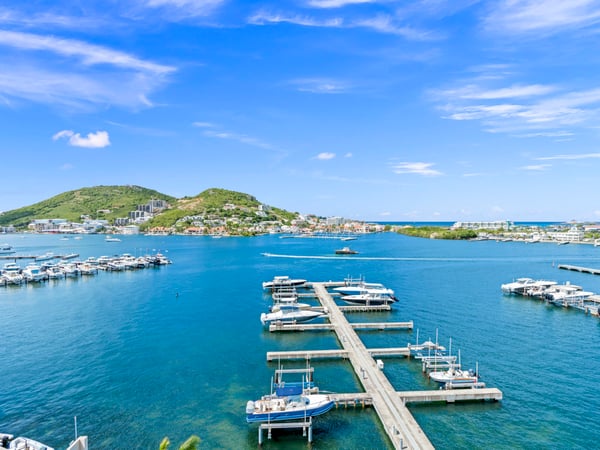 Welcome to this stunning three-bedroom penthouse located in the prestigious gated community of Las Brisas, Cole Bay, St. Maarten. This luxurious residence offers an unmatched living experience with breathtaking views and modern amenities. The penthouse features three spacious bedrooms, each designed with elegance and comfort in mind. The primary suite boasts an en-suite bathroom and private balcony, perfect for soaking in the serene surroundings. The open-concept living and dining areas flow seamlessly into a modern kitchen, equipped with high-end appliances, perfect for entertaining. Step outside onto the expansive terrace, where a private heated pool awaits, ideal for relaxing while enjoying panoramic views of the lagoon and marina. A private elevator provides convenient access to the penthouse, ensuring privacy and exclusivity.