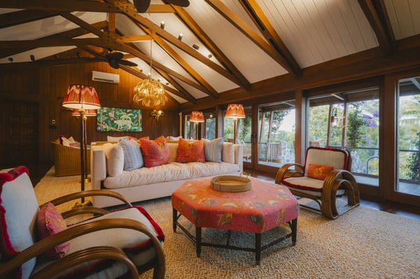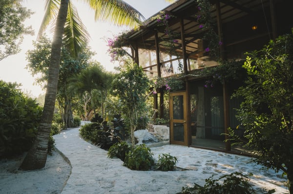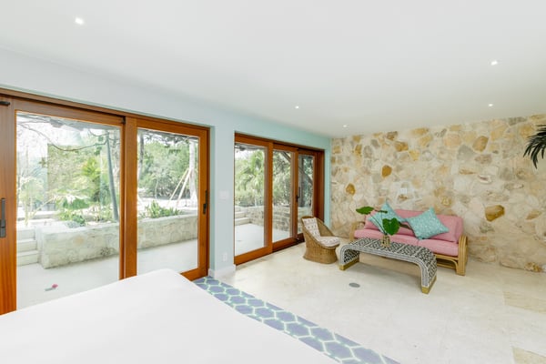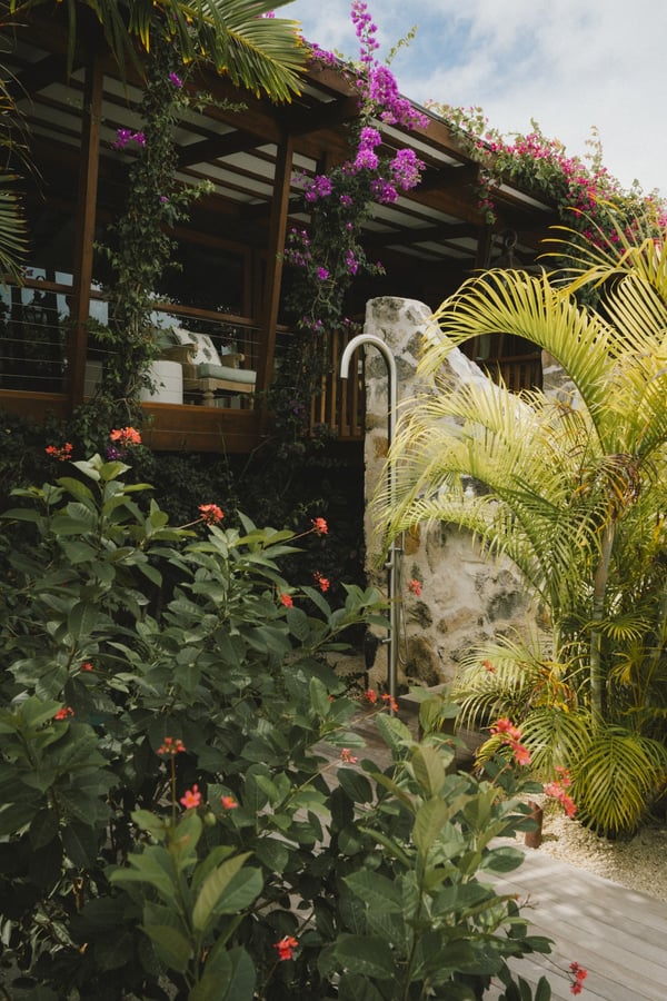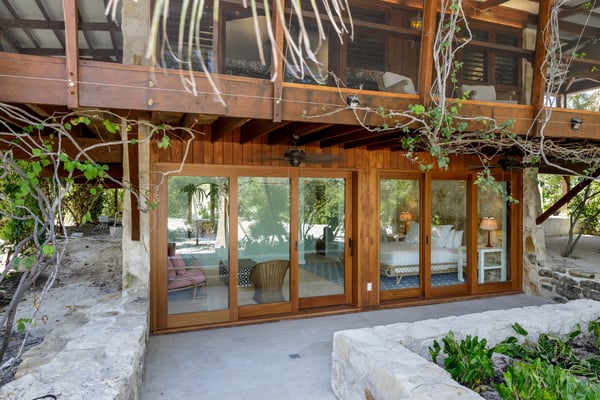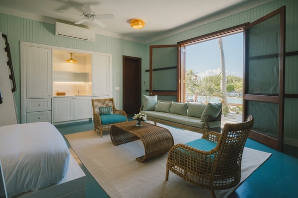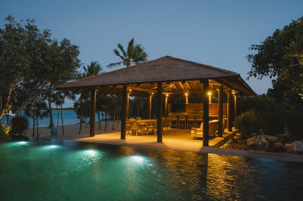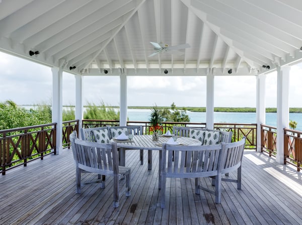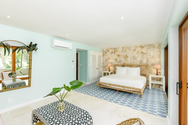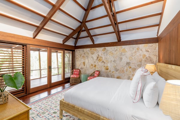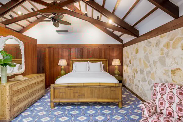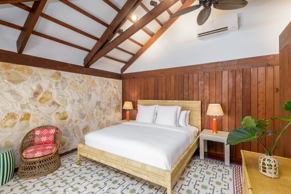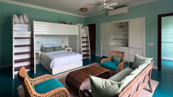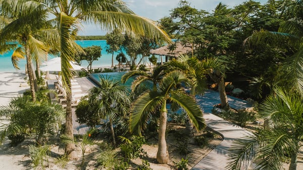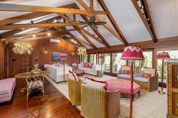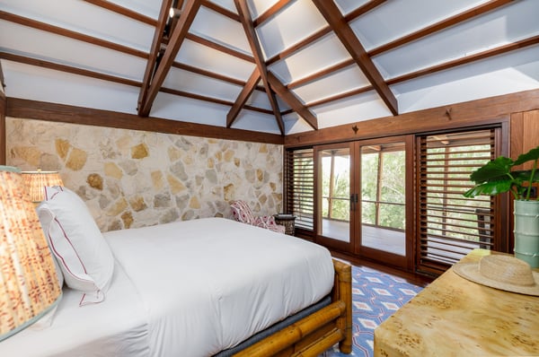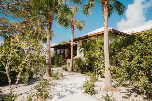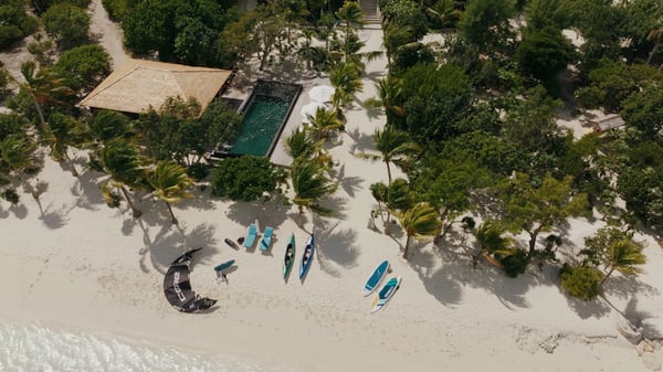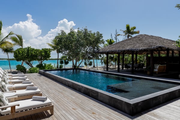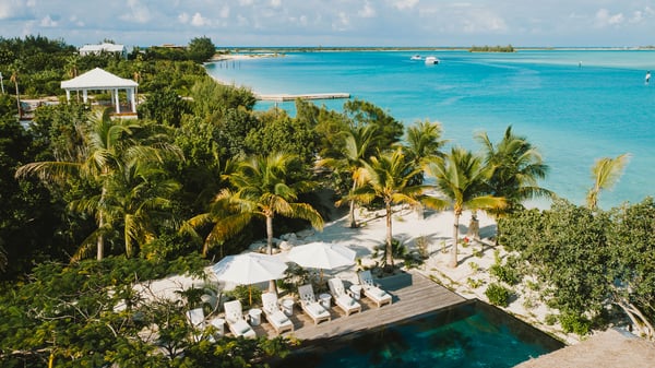 Sitting resplendent in four pristine acres of lush tropical landscaping and boasting 600 feet of sublime Grace Bay beach frontage, The Catch is a unique island residence complete with its own private beach. Fresh from an impressive refurbishment, and available for exclusive hire for the first time in decades, this welcoming ‘home away from home’ is a true original in authentic Caribbean style. Brimming with personality, modern amenities combine with soothing interiors reminiscent of a tranquil Balinese retreat. Original hardwood panelling and floors, a pitched, beamed roof and natural tones and materials are used throughout, whilst eye-catching soft furnishings add character and vibrancy. Four restful bedrooms are located in the spacious main house, with the added bonus of a fifth bedroom complete with bunk beds housed in a dockside guest cottage. Step outside the main villa and a traditional gazebo with a dining area, BBQ, grill and bar is fully equipped for island entertaining, along with a well-appointed rooftop deck blessed with impeccable views of the pristine Cay beyond for the ultimate in sunset cocktails. A 360-degree wraparound veranda at canopy level brings the verdant outdoors indoors, allowing the refreshing trade winds to cool the villa interior, whilst the sleek simplicity of the serene infinity pool beckons below. From there, follow a multitude of winding trails through carefully curated gardens, past mature palms and scented tropical planting to the shoreline, the golden hues of The Catch’s private beach and its inviting azure waters mere steps away.