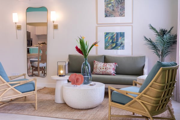 Nearby construction may result in noise disturbances. For further details on how this might affect your stay, please reach out to a villa specialist. Welcome to Casa Aquatica, a spacious and comfortable vacation home in the vibrant El Prado neighborhood of Las Catalinas. Nestled directly across from the new soccer field, this home offers an ideal setting for families and friends to gather, play, and unwind. Casa Aquatica welcomes you with a bright, airy atmosphere that flows through its spacious living and dining areas. Thoughtfully designed, the living space features wicker lounge seating and vibrant, earthy accents, creating the perfect setting for a seaside retreat. The fully equipped kitchen, complete with a large island and bar seating, invites guests to gather and prepare meals together. The dining area features a beautiful wooden table that comfortably seats eight, perfect for sharing meals and creating memories. The home includes four well-appointed bedrooms, each designed for privacy and relaxation. The primary suite on the second floor features a king bed, an ensuite bathroom with a stand-alone shower, and balcony overlooking the soccer field and central park—perfect for enjoying peaceful moments or even catching a beautiful sunset. The additional bedrooms include two guest rooms with single beds that share a full bathroom, one of which is a bunk room with a convenient workspace, offering comfort and functionality for all guests. There is also a lock-off studio on the ground floor with a queen bed and private bath, offering a secluded space for added comfort. Casa Aquatica’s prime location places you just a short stroll from Playa Danta and diverse activities in Las Catalinas, offering easy access to hiking trails and local dining experiences. With a garage for one car, as well as proximity to the beach, tennis courts, and Central Park, this home offers the best of coastal living for both peaceful retreats and active getaways.