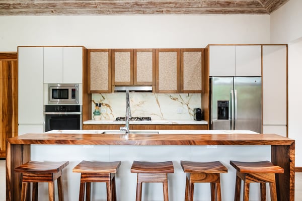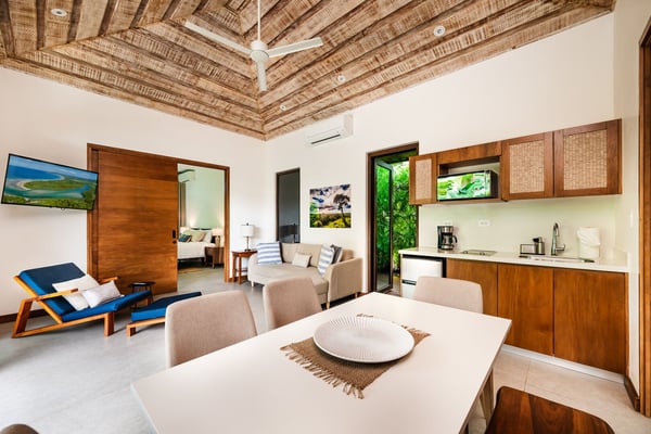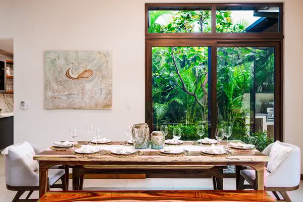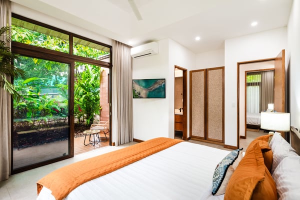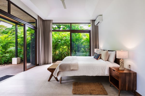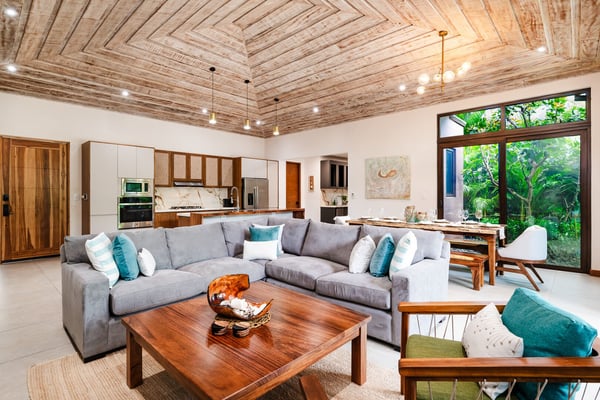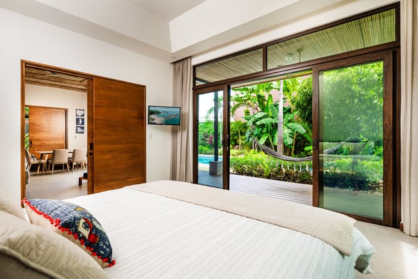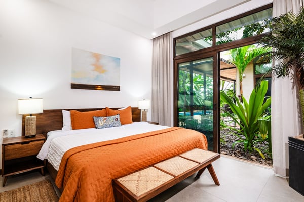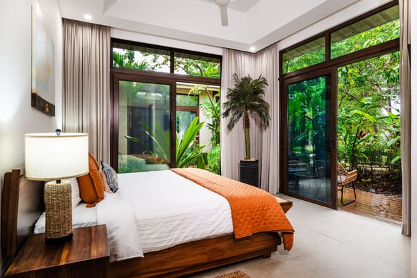 Casa Florecer is a newly built, modern home in Tamarindo Park, an eco-friendly gated community. Surrounded by a magical tropical garden, the property includes a main house and detached suites. Enjoy peaceful outdoor spaces perfect for stargazing by the pool, all while being close to everything yet surrounded by natural beauty.
