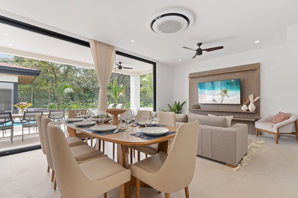 Welcome to Casa Sapphire,this brand-new modern home in the all-new residential community of Hacienda Pinilla offers a private pool, garden, and 5 private suite. At Bosques de Pinilla, you’ll enjoy family-friendly amenities in the beautifully maintained common area. Enjoy a 70-ft lap pool, kids’ shallow area, sundeck, open-air BBQ, and exclusive access to the fitness and yoga room. Standout features: • A private pool, perfect for unwinding and cooling off • 5 private suites hosting up to 12 guests • Access to a 70-ft lap pool with a shallow area for kids • Access to a fully equipped fitness and yoga room, exclusive to the residential guests