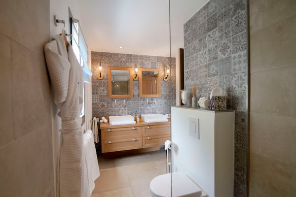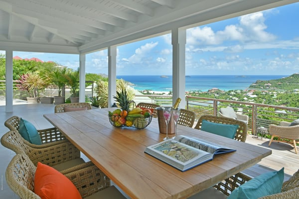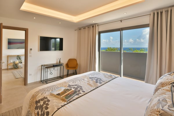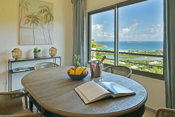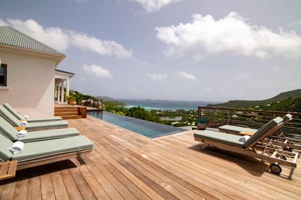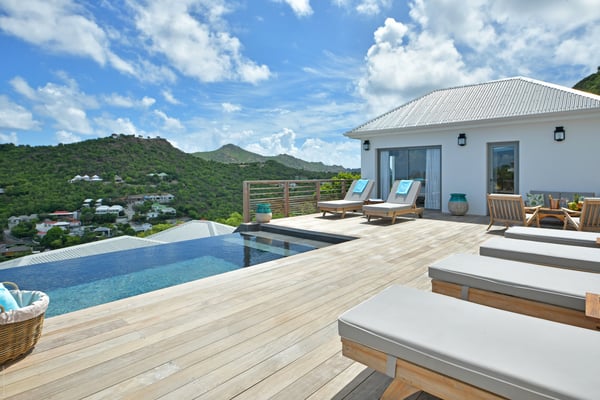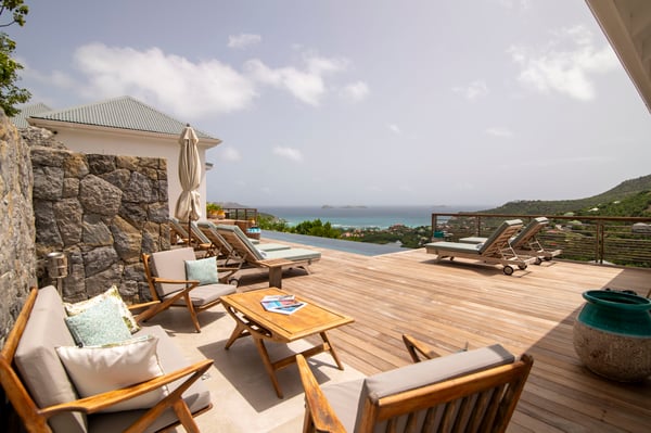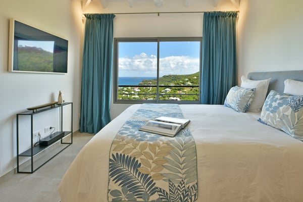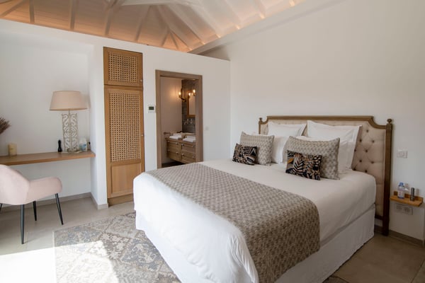 Villa Vogue blends the ease of a central St. Jean location with the welcoming feel of a true island home. Warm and cozy yet generously proportioned, it’s a space where thoughtful design and inviting comfort come together. The main living area includes a well-appointed kitchen that opens to a covered dining space, ideal for shaded meals. Adjacent to the living room, a fitness room offers a convenient place to keep up your routine. Outdoors, the heated pool is complemented by a wet bar, making it easy to enjoy refreshing drinks or casual gatherings. Loungers invite long afternoons in the sun, with enough space to relax or socialize. Bedroom 1 connects directly to the living room, Bedroom 2 is set in an independent bungalow on the same level, and Bedroom 3 occupies its own poolside pavilion with direct access to the terrace. A separate guest house on the lower level hosts Bedrooms 4 and 5, complete with its own kitchen, dining area, and private outdoor space. This arrangement is ideal for extended family, friends, or staff, offering comfort and privacy while keeping everyone close. With its thoughtful layout, Villa Vogue allows guests to enjoy time together or retreat to private corners. And with Sibarth’s concierge team on hand, every detail of your stay can be tailored—from in-villa dining and spa treatments to arranging time at St. Jean’s beaches, restaurants, and boutiques, all just minutes away.