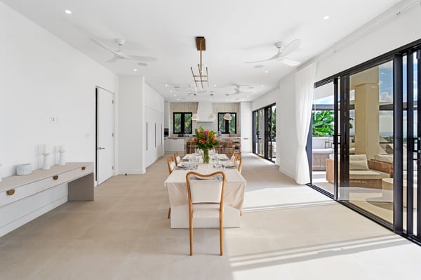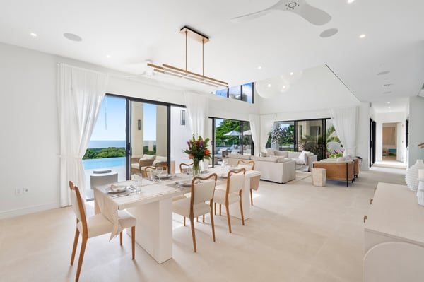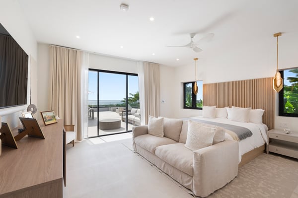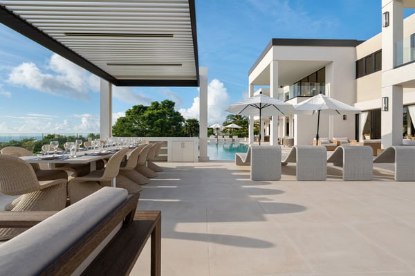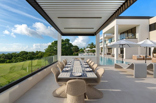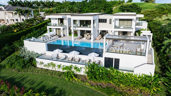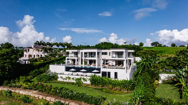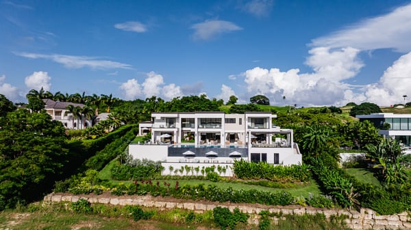 Perched high above the West Coast of Barbados along Moonshine Ridge, Above The Clouds is a stunning 6-bedroom villa that offers an unrivalled holiday experience. True to its name, this villa evokes a surreal sense of tranquility and luxury, with panoramic views that stretch endlessly over the Caribbean Sea. Upon arrival, guests are welcomed by a bright, open-plan living area, where sweeping sea views greet you from every angle. The expansive living room seamlessly flows onto the large pool deck via sliding glass doors, inviting the outdoors in. The pool area is the heart of the villa; with breathtaking vistas of the entire West Coast. Loungers and umbrellas surround the pool, offering the perfect spot to soak up the sun, while gentle breezes provide the ultimate relaxation. The deck also features a bar and grill area, while a large dining table invites al fresco dining with the most extraordinary view as the backdrop. Below the pool deck, an additional terrace provides a quiet nook—perfect for reading a book, or sipping sunset cocktails as you watch the sky transform. Inside, the kitchen adjoins the living area, equipped with top-of-the-line appliances and modern conveniences. Also on this ground level is a dedicated entertainment room, ideal for movie nights. The main house features four spacious bedroom suites, including one on the ground floor, which, like all the suites, boasts an en-suite bathroom and walk-in closet. This ground level suite also allows for direct access onto the pool deck. The three remaining suites are located on the upper level, each with its own private terrace offering captivating views of the ocean and the island’s lush landscapes. A beautifully positioned terrace off the upper level provides the perfect spot to enjoy Barbados' famous sunsets with a cocktail in hand. Each of the villa's bedroom suites is a serene retreat, luxuriously furnished in neutral tones that complement the vibrant greens of the surrounding tropical gardens. Every detail has been thoughtfully curated to create a harmonious blend of modern Caribbean luxury. For additional space, Above The Clouds features a self-contained 2-bedroom cottage equipped with a kitchenette just steps away from the main house. Each bedroom suite features its own en-suite bathroom, offering privacy and comfort for additional guests. A scenic footpath leads guests from the cottage down to the beautifully manicured gardens. This exceptional villa also offers a covered garage and a port for the villa's complimentary golf cart, making it easy to navigate around the resort. With access to world-class amenities such as an 18-hole championship golf course, tennis, padel tennis, hiking trails, and on-site dining, Apes Hill offers a rare fusion of nature, luxury, and recreation. Guests also enjoy beach access at the exclusive Fairmont Royal Pavilion Beach Club, just a short drive away in Holetown. Above The Clouds is a sanctuary of peace and luxury, offering an unmatched getaway in one of Barbados' most esteemed locations.