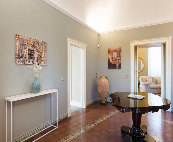 Micanera House is a beautiful and comfortable residence with swimming pool located in the historic town of Viagrande, a characteristic hillside village on the slopes of Etna. Surrounded by a manicured garden with spacious terraces and a delightful salt-washed infinity pool, the residence – restored to its original charm thanks to a detailed and recently completed restoration – evokes the charm and atmosphere of the elegant Sicilian residences of yesteryear. The exclusive interiors, split over two levels across an area of over 240 square metres, include a spacious living area, dining room, fully-equipped kitchen, four bedrooms and five bathrooms. These cosy rooms equipped with curtains and coordinated fabrics, are fitted out with all modern comforts: air-conditioning, Wi-Fi internet, Smart TV, washing machine and dishwasher, electric oven and microwave, espresso machine and American coffee maker plus private parking. Micanera House is the perfect place to spend a comfortable and relaxing stay in a refined and elegant setting as well as an excellent base for exploring Etna and its characteristic foothills. Take a short drive to also reach Acireale, Aci Trezza and Aci Castello, Catania, Taormina and Syracuse. CIN: IT087053C27N3E65Y6