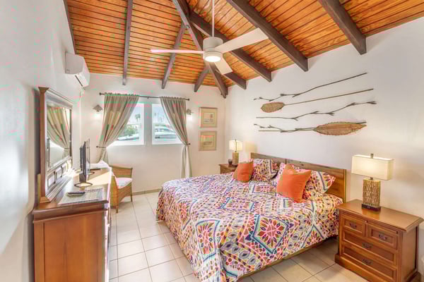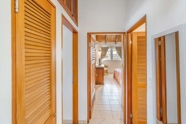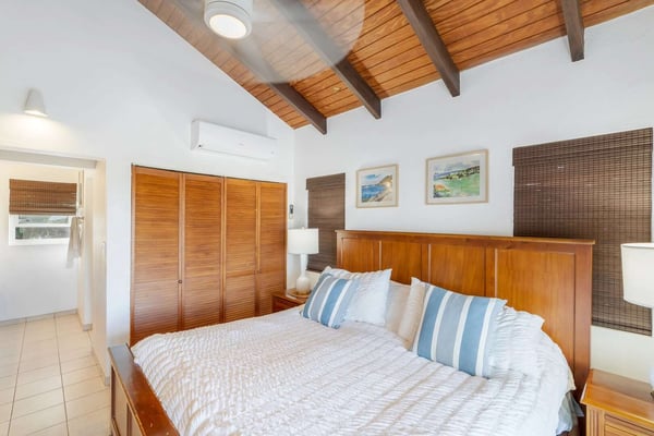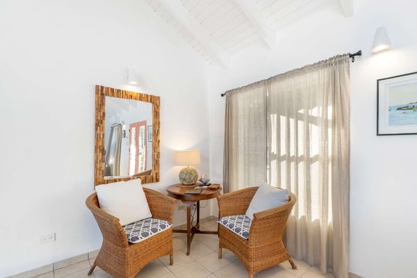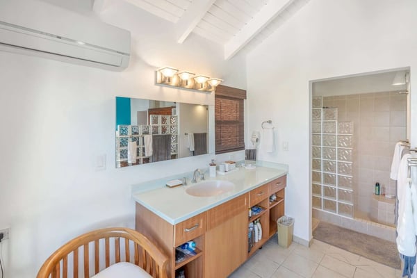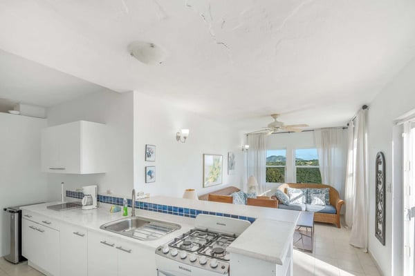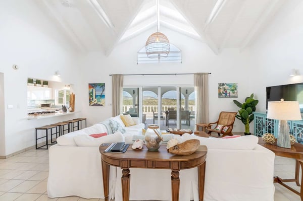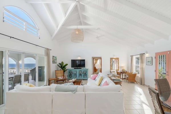 Villa Arcadia is a welcoming and tranquil four-bedroom, four-bathroom hillside villa with a heated pool in the beautiful Villas of Oyster Pond (a private gated community) located on the Dutch side of the island and close to the French border, offering easy access to both worlds and luxurious amenities. From the pool deck, there are expansive views of the ocean and Oyster Pond Marina with plenty of room for sunbathing around the deck in reclining lounge chairs. A large covered outdoor arcade with comfortable couches, chairs, and a dining area is great for relaxing out of the sun, grilling, and eating meals. For early risers, this is a great villa to view the Caribbean sunrise over the island. The living and dining areas, with their soaring Caribbean ceilings, are beautifully furnished, modern, and comfortable: from the living area, you walk out to the pool deck via wide sliding doors that cover almost the entire length of the wall. The adjacent kitchen is spacious, well-equipped, and has a breakfast bar that opens to the living area. There are three well-appointed bedrooms located on the main level of the villa: the primary bedroom with a mahogany king-size bed and en-suite bath is located on one side of the living room and opens through sliding doors to the pool deck. The second bedroom is located next to the primary bedroom and features a king bed convertible to twins - a full bath in the hallway is adjacent and for use by the living area or this bedroom. The second primary is on the opposite side of the villa and has a king-size mahogany bed as well as its own en-suite bath - all three bedrooms have air-conditioning and smart TVs and open into the main living area of the villa, making this a wonderful home for families and entertaining. On the lower level, there is a one-bedroom apartment that is the fourth bedroom with its own private entrance. The apartment offers wonderful ocean views and is self-contained with its own living area, small kitchen with breakfast bar, and separate bedroom area with air conditioning and bathroom. The villa provides high-speed internet service, a 65-inch smart TV in the living area, Wi-Fi throughout, a washer & dryer, and a spacious parking area with a quick drive in from the main gate. Arcadia is minutes away from beautiful Dawn Beach and Oyster Pond, the gourmet restaurants of Grande Case, the beaches of the French side, the charm of Marigot, or the nightlife and Casinos of the Dutch side, and duty-free shopping in Phillipsburg are all within a short drive. Enjoy Villa Arcadia and experience a taste of the Caribbean lifestyle!