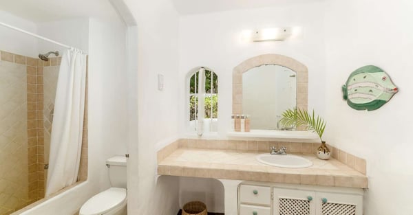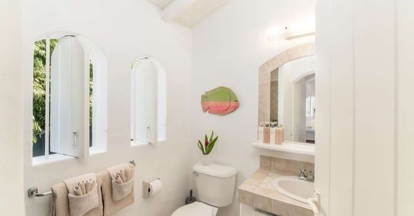 Hibiscus is a lovely Mediterranean-style villa, boasting stunning beach views and offering the same privacy, seclusion and luxurious escape as all the other villas located on the exclusive Merlin Bay Resort. With two floors and a private plunge pool this villa is the perfect place for gazing out to sea and enjoying the most spectacular Caribbean sunsets. There are three lovely airconditioned bedrooms at Hibiscus. The ground floor features a guest bedroom with ensuite bathroom, a well-equipped kitchen, an indoor dining room with sunken living area with floor to ceiling doors that lead to a small open-air terrace out to a private plunge pool. Positioned on the upper floor is the master suite with an intimate balcony, along with an additional guest suite and a dining terrace, all enjoying lovely views over the large central swimming pool to the tranquil aquamarine waters of the Caribbean Sea. Guests can enjoy the shared swimming pool or take an early morning sea bath and bask in the tropical heat on the stunning, pristine, white sandy beach, just a few steps from Hibiscus. The property provides direct access, via a private stairway, to a stunning beach offering excellent swimming and snorkeling.