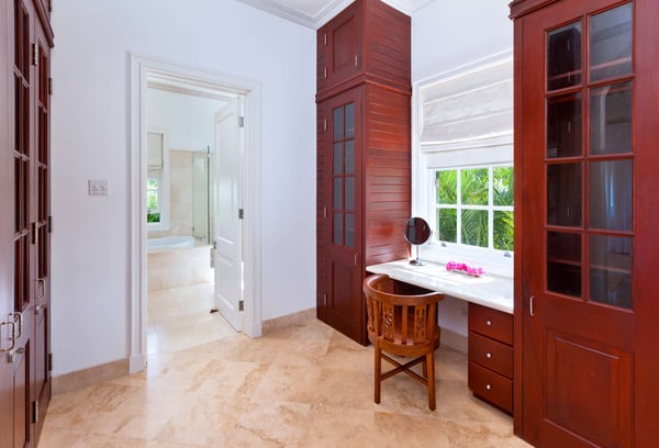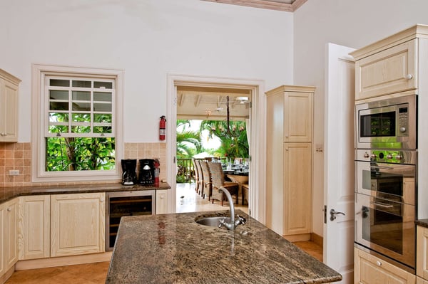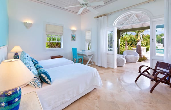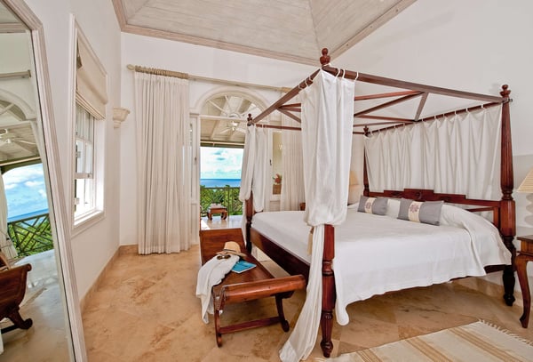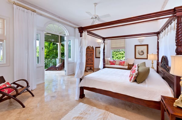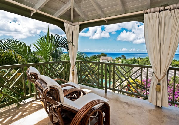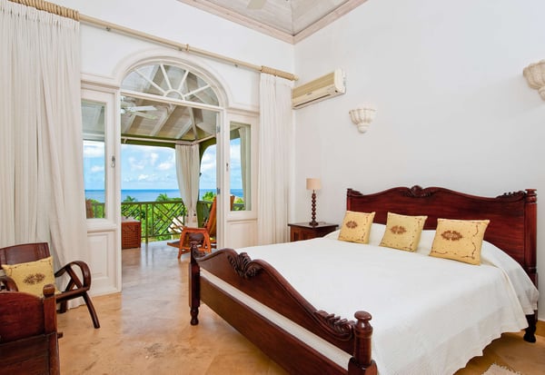 Nearby construction may result in noise disturbances. For further details on how this might affect your stay, please reach out to a villa specialist. The Sugar Hill Resort community offers a number of resort amenities. Guests will have access to the Clubhouse, restaurant, resort swimming pools and tennis courts. Located in Barbados' prestigious Sugar Hill Estate, Go Easy offers a luxurious retreat amidst lush tropical gardens spanning 1.5 acres. This six-bedroom villa, comprising a main house and guest cottage, with captivating views of the Caribbean Sea along the revered West Coast. Upon entry, guests are greeted by a grand staircase and elegant chandelier, setting the tone for the villa's opulent interiors. The ground floor houses a spacious Great Room, an air-conditioned family room, an outdoor dining area, and a sprawling covered patio leading to the pool. A lavish bedroom suite with a four-poster bed and private terrace access adds to the ground floor's allure. Outdoors, an expansive infinity-edge pool, jacuzzi, and pavilion beckon for relaxation and entertainment, with a wet bar and deluxe gas barbecue for alfresco dining. The villa's private tennis court and gazebo offer additional recreational options, making it one of Sugar Hill's exclusive retreats with private tennis facilities. Formal dining is a delight at the marble table on the outdoor patio, surrounded by tropical foliage and ambient lighting. Inside, the air-conditioned family room provides respite from the heat, featuring state-of-the-art entertainment for all ages. The main house comprises four spacious air-conditioned bedrooms with private balconies and marble-tiled en suite bathrooms, while the guest cottage offers two more bedrooms, a fully equipped kitchen, and a shaded patio by the pool.