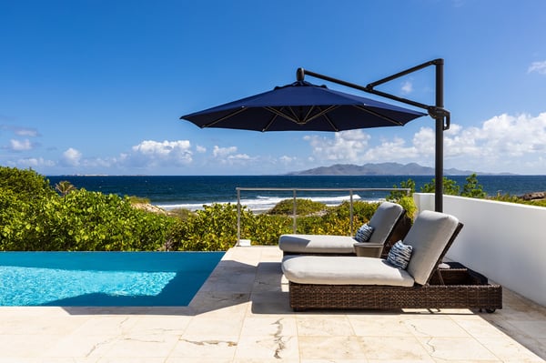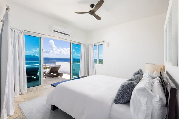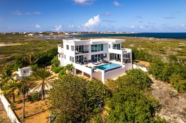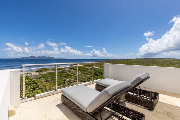 The ultimate Caribbean luxury is Tequila Sunrise, an exquisite Anguilla villa rental nestled in the tranquil paradise of East End, Jopsey Bay. This modern beachfront retreat boasts three primary suites, each with floor-to-ceiling windows framing breathtaking views of the sparkling Caribbean Sea and the enchanting island of St. Martin. Start your day with spectacular views from your private sanctuary in one of Anguilla's finest villas, where the azure waters seamlessly blend with the sky. Step out onto your spacious terrace, featuring a serene infinity pool surrounded by plush sun loungers and ample outdoor dining space, creating the perfect setting for relaxation. Adjacent to the pool, a cozy lounge seamlessly connects to the indoor dining area, where a large eight-seater table and a gourmet kitchen offer ocean views through sliding glass doors. A short and picturesque two-minute stroll takes you to Lover's Cove, a secluded beach offering a tranquil retreat amidst natural beauty. Upon entering the villa, you are greeted by a charming interior courtyard, setting the tone for the inviting living space beyond. The ground floor features a luxurious king-sized bedroom with an en-suite bathroom and stunning ocean views that can be enjoyed from both inside and outside the room. Upstairs, two additional bedrooms offer private balconies, king-sized beds, and luxurious en-suite bathrooms. Sliding glass doors open to panoramic ocean views, providing a captivating backdrop for relaxing along the rugged coastline. The villa also includes an outdoor shower, allowing you to enjoy a unique bathing experience surrounded by the area's natural beauty. Indulge in an outdoor shower amidst nature or unwind in the spacious bathrooms after a day exploring the island, such as visiting the beautiful Shoal Bay East, just 7.1 kilometers away. Tequila Sunrise offers unmatched luxury, comfort, and natural beauty, ensuring an unforgettable Caribbean getaway.