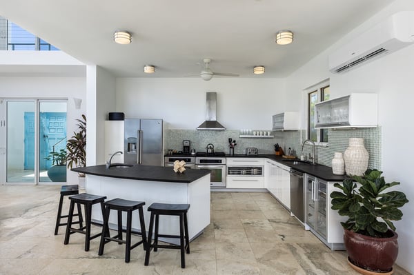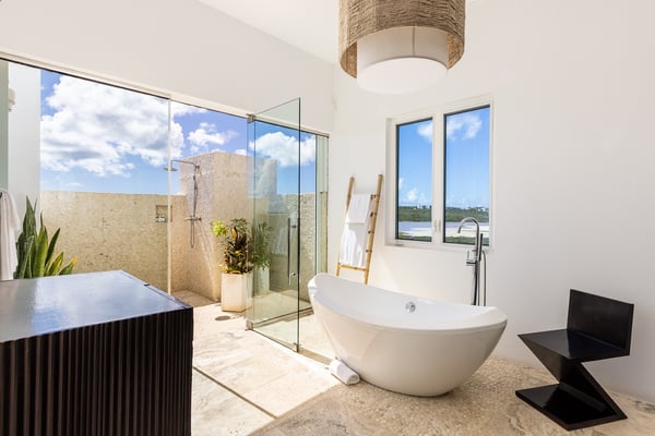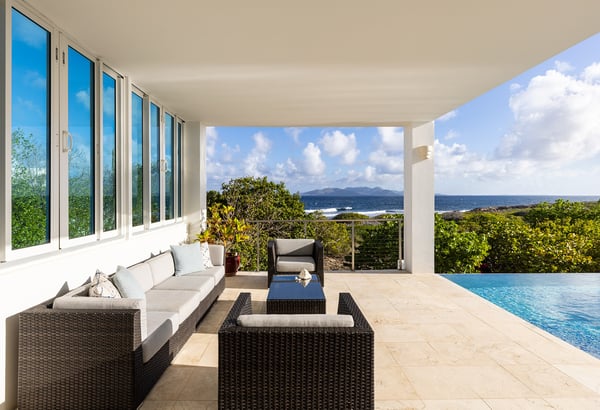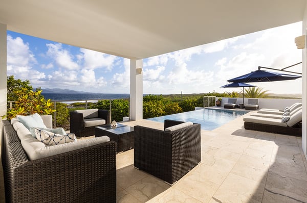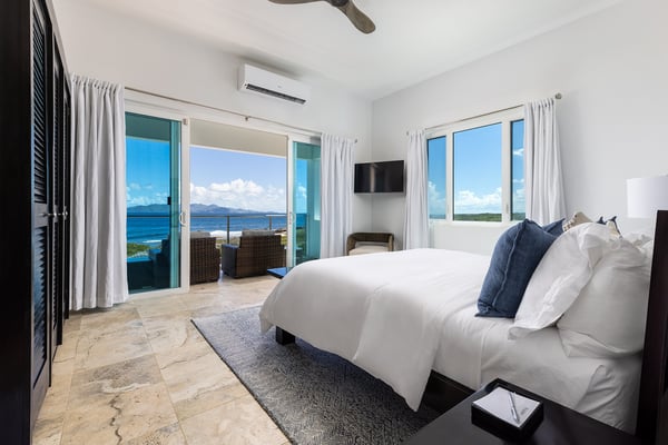Tequila Sunrise Villa is beautifully modern, has a great pool with high-end "floaties" and is but a short walk from the ocean with beautiful views of neighboring islands. There's enough plant life between the villa and the beach to harbor some local wildlife; I was treated to delightful bird songs (Binoculars provided!). Each of the 3 bedrooms has an en suite bath with outdoor shower. Nice bath products (except for icky mouthwash!). Nice sound system; good WiFi; DISH TV in every room; computer and printer (which I NEEDED for all of the Covid paperwork processing to remain in and to leave the country). The air conditioning works great in the bedrooms. The Great Room and the outside stairs to the 2 upper bedrooms are not air-conditioned; they get a great breeze, but it can still get a bit warm. But you'll be outside around the pool or in the covered patio, so that won't matter! The mascot - a life-size, stuffed billy goat, "Billie" (with whom guests are encouraged to take outrageous pictures!) is a cute touch. Also loved the "always on" dispenser of chilled Patron tequila! The beach was close, but very rocky (the legacy of Hurricane Irma I hear) and the ocean is rough on this side - so I wouldn't call it a swimming beach. The public beach management and seaweed composting in Anguilla are fantastic; huge amounts of seaweed can be seen rolling toward shore each day - but you won't find it piling up on beaches!