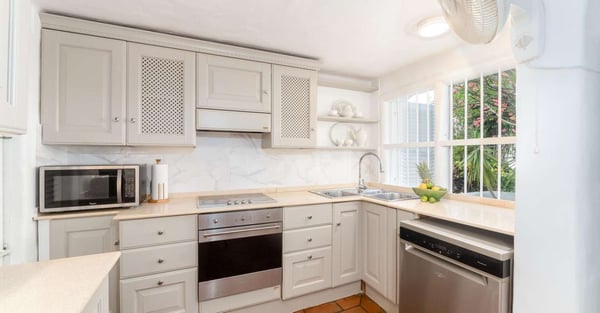 Merlin Bay is a delightful Mediterranean-style beachfront development located within the exclusive area of The Garden, St. James. Firefly is one of just eight townhouses surrounding a lagoon-style swimming pool and offers lovely views of the aquamarine waters of the Caribbean Sea. The beach is just a few steps away from the townhouses' private sun terrace, complimented by a plunge pool and BBQ. Its split-level floor plan features an en suite bedroom, kitchen, dining room and sunken living room on the ground floor, as well as an open-air terrace with a private plunge pool. The primary suite, with an intimate balcony and en suite bathroom, as well as an additional guest bedroom are located on the first floor of the townhouse. Set amid lush tropical gardens designed to offer a high degree of privacy, Merlin Bay has a stairway providing direct access to a stunning beach below, ideal for swimming and snorkelling.