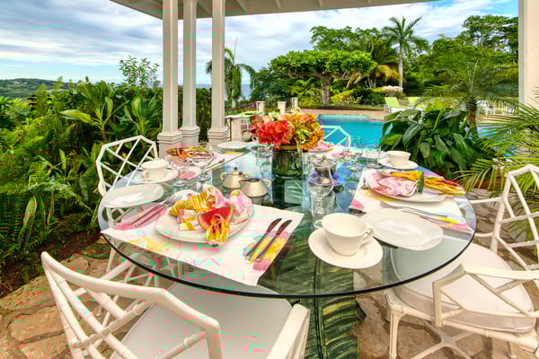 The Tryall Club requires all villa and condo guests to become members during their stay via a Temporary Membership Fee ($) (plus a 15% service charge). Children between the ages of 13 and 15 pay at a discounted rate (plus a 15% service charge). Guests can also pay per day, for guests ages 16 and older, who stay for one to four days. This can be either prepaid or upon arrival at the Club. For children 12 years of age and younger, our Temporary Memberships are complimentary. Please contact a Villa Specialist for exact pricing! Windsong is an exquisite and very private home; it benefits from spectacular views day and night and the most favorable tradewinds. The east view captures the sunrise and Montego Bay. The west view is an equally lovely vista towards Negril, the sea, and the sunset. This charming tropical villa encapsulates a complete Jamaican experience. Noted for its sweeping panoramic views, airy rooms, lush rolling landscape, and well-laid-out tropical gardens, Windsong Villa is itself simply gorgeous and exquisitely inviting – from the outside in. The home and its elegant features cleverly blend the beauty of nature into the indoor settings, and guests get an instant sense of serenity upon arrival. The Windsong experience begins as soon as you turn onto the circular driveway encompassing the shade of our majestic banyan tree - resplendent with hanging orchids - and continues as you enter the welcoming courtyard with its vibrant tropical plants and water fountains inviting you to enjoy the finest of Caribbean living. Windsong’s unique hill located on the outskirts of Montego Bay is perfect to marvel at the most amazing views whilst enjoying the favorable trade winds of the season. The east view captures the rising sun over Montego Bay, while to the west is an equally lovely vista of Round Hill and breathtaking tropical sunsets above the lush green hills of Hanover. With soothing water features throughout, you will feel instantly welcome and at home. The well-cared grounds are thoughtfully filled with a variety of local tropical trees, plants, and flowers, and fruit trees – the produce of which make it to the breakfast table when in season. Wander at leisure through this extensive garden and get to know Jamaica’s flora. The villa is managed by a highly experienced team of staff who will ensure that your stay here meets and exceeds your expectations. The team will be happy to offer suggestions and recommendations when asked. Plan your meals with the skillful, creative chef who will work with your tastes and dietary needs – serving up meal after sumptuous meal made from the freshest of ingredients, for your culinary delight. You may wish dinner to be served by candlelight indoors or in the more casual al fresco dining area on the verandah overlooking the pool. The poolside bar is kept stocked with ice and drinks for your convenience, and the sound system supplies music both indoors and out.