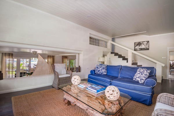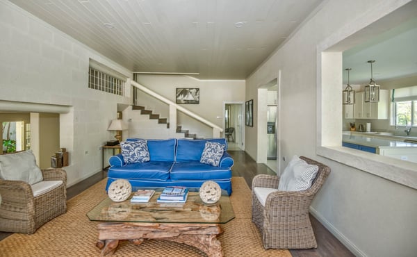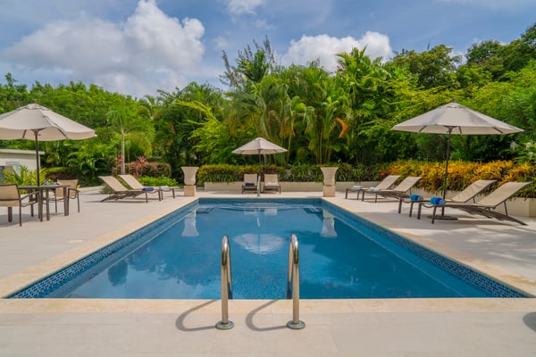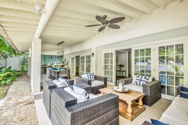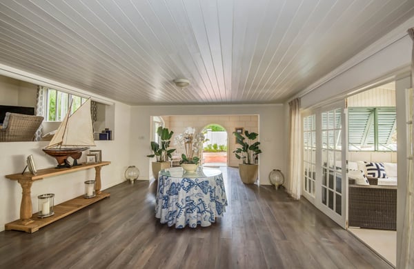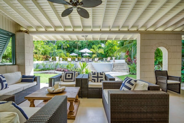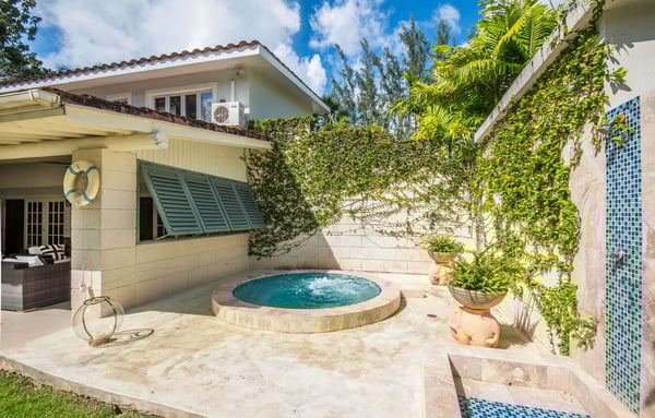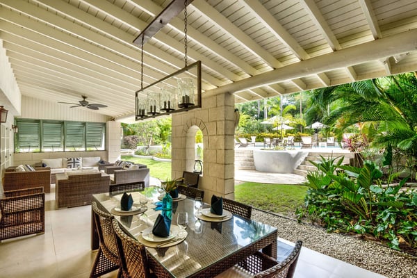 Capri Manor is a charming four-bedroom luxury holiday villa located moments away from the world-famous Gibbes beach. The outdoor spaces feature lush tropical gardens, a Jacuzzi and a full-size swimming pool. In addition, a large deck with ample patio furniture and a built-in gas barbecue pit surrounds the pool. The interiors comprise of a sitting room, a modern kitchen and four en-suite bedrooms. The bedrooms are fully air-conditioned and there is cable TV in two of the four bedrooms. A covered outdoor patio dining area which is also the perfect spot for entertaining has lovely views of the back gardens and pool. Tropicana Beach is located nearby and offers a nice stretch of beach with calm waters, perfect for swimming.