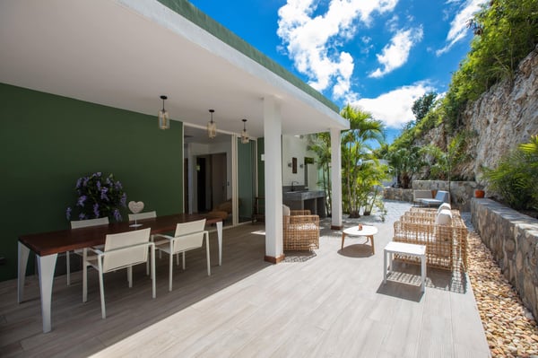 Villa Sunrise is an amazing place to stay! Perched on a mountainside, it offer breathtaking views of the surrounding area. Being able to see the sunrise over the ocean and the nearby islands of Pinel, Tintamarre, and St Barths in the distance is an unforgettable experience. In addition to the stunning views, Villa Sunrise would offer a tranquil and peaceful setting. Being located on a mountainside, it is surrounded by lush vegetation and wildlife, creating a serene atmosphere. Villa Sunrise has not only incredible views but also luxurious amenities. The fact that all three bedrooms have king-sized beds, en suite bathrooms, and air conditioning means that guests can enjoy maximum comfort during their stay. The addition of a Jacuzzi in the third bedroom is a great touch. Guests can relax and unwind after a long day of exploring the island or simply enjoy a soak while taking in the stunning views from the villa. The fact that Villa Sunrise has been totally refurbished also means that guests can expect a modern and contemporary design that incorporates the latest trends and styles. With attention to detail from the designers, Villa Sunrise is sure to impress with its chic decor, high-end finishes, and thoughtful touches throughout the property. The property is located within a few minutes' drive to the most beautiful beach in St Martin with its restaurants and activities. Villa Sunrise is conveniently located close to one of the most beautiful beaches in St Martin. Guests staying at the property can easily access the Orient Bay beach within a few minutes' drive, which is ideal for those looking to spend time soaking up the sun, swimming, or enjoying water sports. The fact that there are also restaurants and activities nearby means that you won't have to travel far to find entertainment and dining options. Overall, Villa Sunrise sounds like the perfect combination of luxury and natural beauty, offering guests an unforgettable vacation experience!