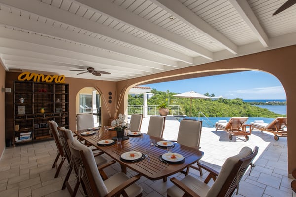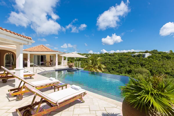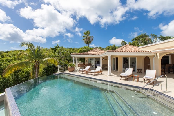 Welcome to Villa Sea Vous Play in St Martin! This stunning villa boasts beautiful ocean views and features a large pool for you to enjoy. As you enter the villa, you'll be greeted by a comfortable living room and a spacious kitchen that opens up to the covered terrace and dining area. This is the perfect spot to relax and take in the breathtaking views while enjoying a delicious meal or hosting a barbecue. The villa offers four bedrooms, each with its own ensuite bathroom and air-conditioning. All bedrooms open out onto the pool terrace, allowing you to easily access the refreshing waters. The bedrooms are equal in size and standard, providing comfort and privacy for all guests. Most of the bedrooms feature king-size beds, while one bedroom has two single beds. Villa Sea Vous Play is the ultimate home for an unforgettable vacation with your friends and family in St Martin. Whether you choose to rent it as a two, three, or four-bedroom villa, you'll have everything you need to create lasting memories on this beautiful island.