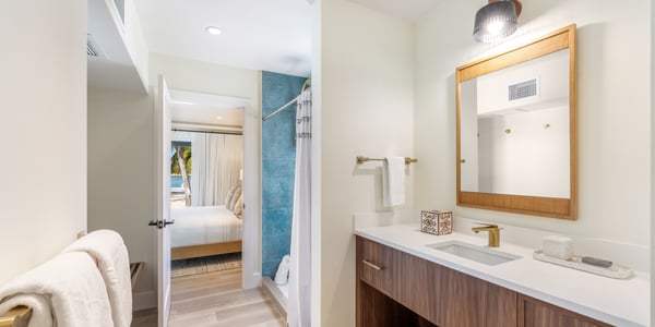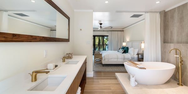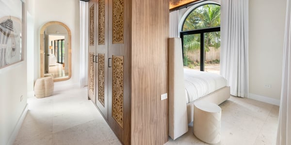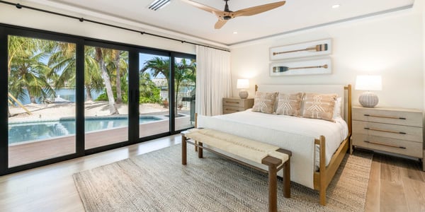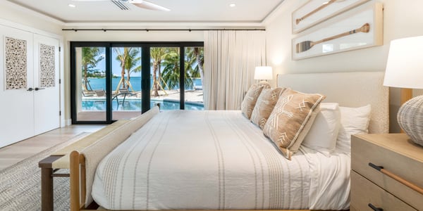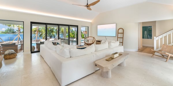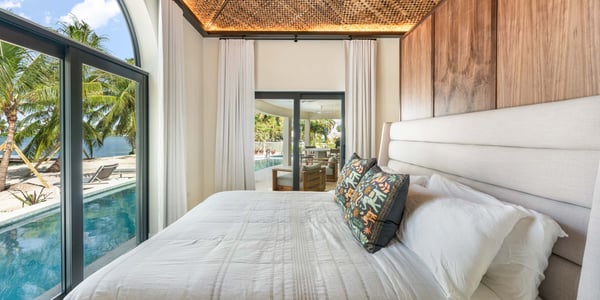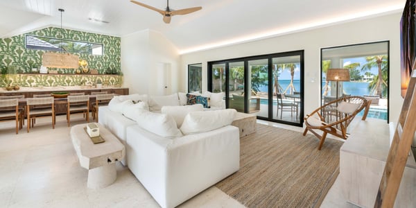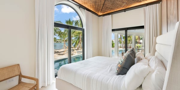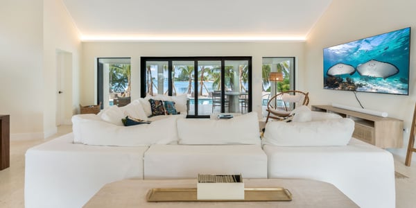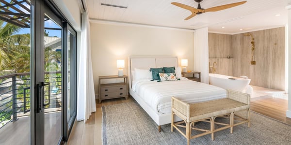 Kai Cove is a newly renovated beachfront home within the exclusive Cayman Kai area near Rum Point. Blending beach house vibes with Balinese decor, Kai Cove's redesign has been profiled in Real Life Caribbean, a luxury lifestyle magazine. This stunning home features a new waterfront pool with a veranda lounge plus a private dock for rented jet skis or a boat. Book a charter to Stingray City and request dock service to collect your party from the home's dock. Nestled on a white sandy beach, Kai Cove is perfect for children looking to play in the sand, or just long afternoons spent lounging by the water. Pool heat is available as an option for US$25 per day. Both Rum Point Club and the Kaibo Marina are just a short walk away. Guests can pop out for watersport activities, day trips to Camana Bay on the ferry, or enjoy drinks and lunch on the beach. Kai Cove's 4-bedroom configuration sleeps up to 8 guests comfortably. Infants under 2 sleeping in cribs or pack-n-plays do not count towards occupancy. Three bedrooms are in the main house with an adjoining guest bedroom and bathroom, safely accessible from the back deck or front door. The Floor Plan depicts the full layout. Beach Notes The entire island is only 22 miles wide from west to east, so you are never too far from anywhere on Grand Cayman. The cove-front homes in Cayman Kai offer calm serene water for docking a rental boat, permitting charter boat pick-up, or just safe shallow water for little children to play in at water's edge. Adults won’t want to swim in the cove. The water is shallow and has a soft muddy bottom. There is no reef here but we do see the occasional turtle, eagle ray, or tarpon swim by in the shallows. The white sand beach at Rum Point is available and open to the public for swimming. General Grand Cayman Beach Notes All beaches in Grand Cayman are technically “public” since the Crown owns up to the high water mark. The shoreline behind your property may vary seasonally. Be advised, that the beach or water entry behind your property may vary slightly from the images on our website due to weather. The next-door beach is also always available for your use. Ocean Debris & Sargassum Seaweed Beaches in Grand Cayman may also experience floating ocean debris and sargassum weed seasonally. Sargassum is a generally harmless floating seaweed that has increased in frequency in recent years. Although sargassum is an unsightly nuisance, it is largely seasonal in summer. It is VERY RARE in the Cayman Kai cove. Owners do make efforts to remove sargassum and will have the beach raked before your arrival.