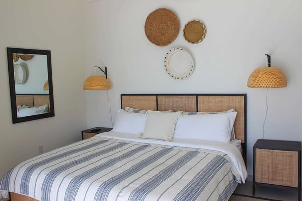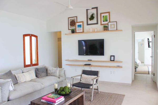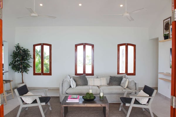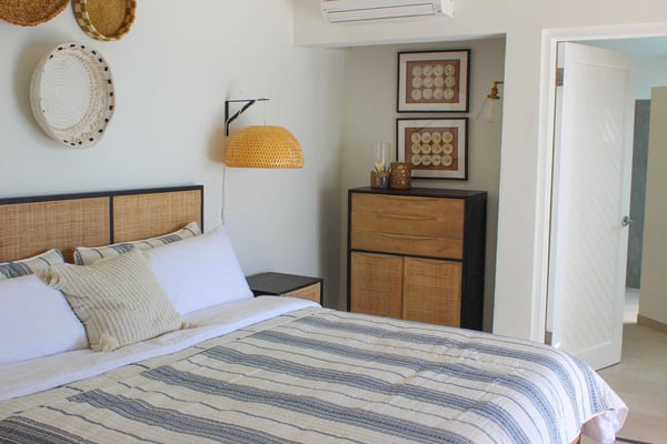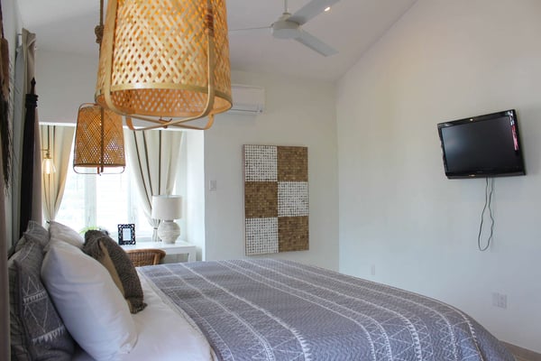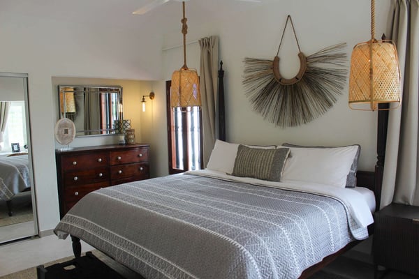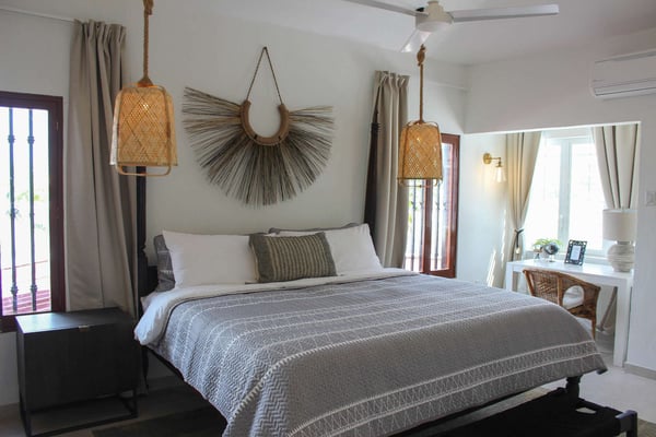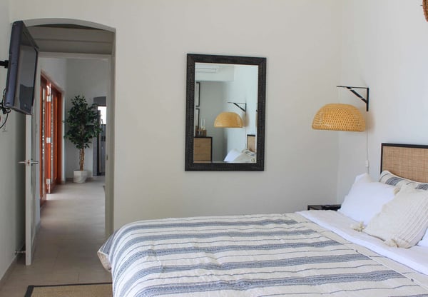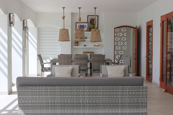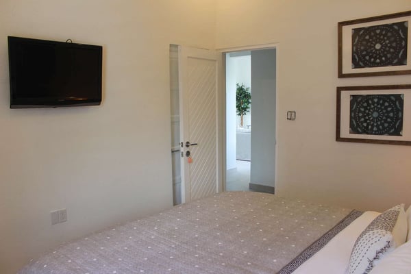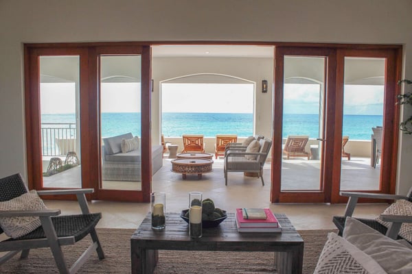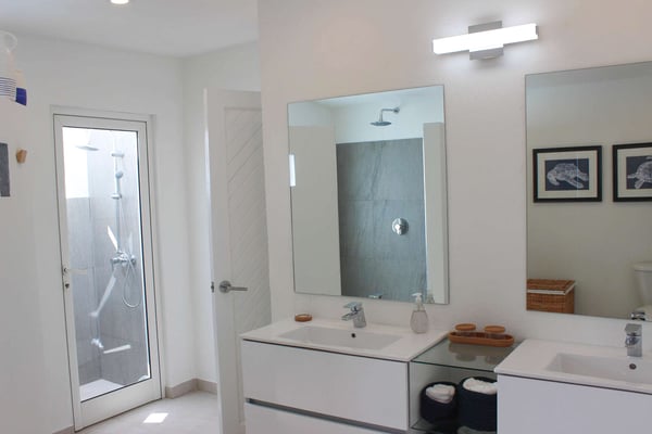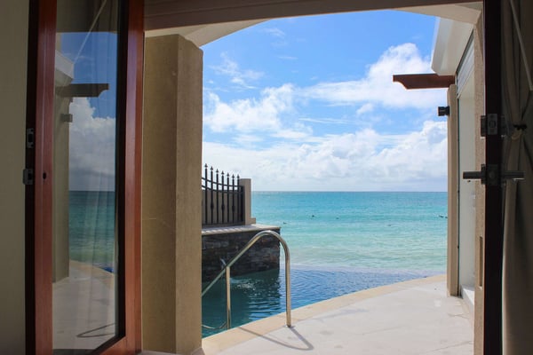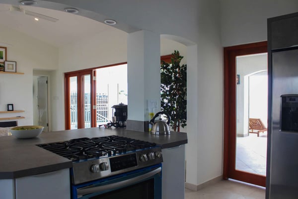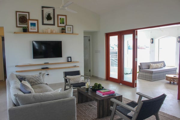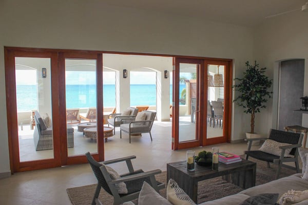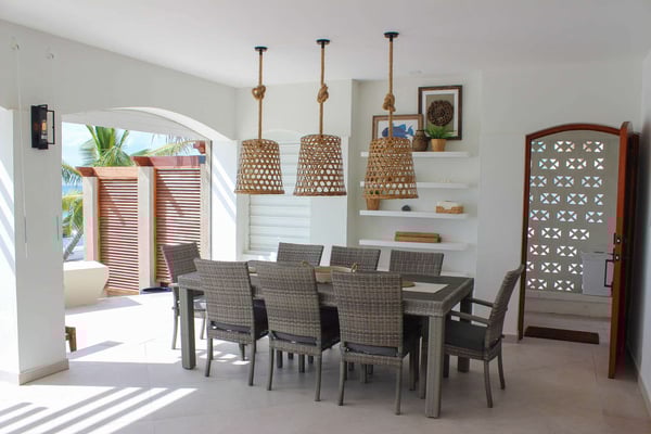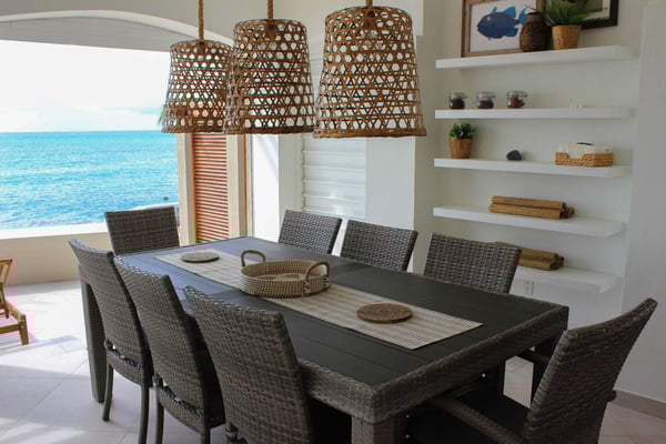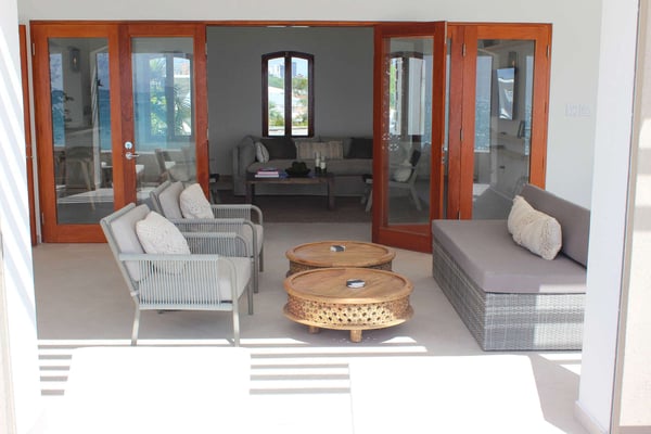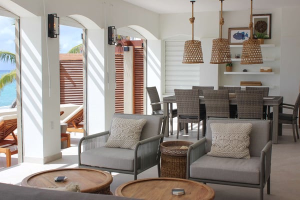 Faja Lobie has become a very popular rental home over the last years. This beautiful, newly renovated three-bedroom, three-bath villa sits directly on Bourgeaux Bay beach in the residential area of Beacon Hill on the Dutch side. This home offers a wonderful combination of indoor and outdoor living space. The interior living room overlooking the water is furnished with comfy couches and an entertainment center that houses the TV. The adjacent newly redesigned open-concept kitchen offers state-of-the-art appliances. The interior living space opens through glass doors out to the covered gallery, from where the beach is just steps away. Beautiful furniture and cushions complete the outdoor living and dining areas. The entire outdoor space can be closed off as well with sliding shutters. The air-conditioned bedrooms, each with its own en suite bath, open into the interior of the home. Each bedroom is uniquely styled with king beds. The front bedroom opens to the pool deck and has an outdoor shower in the bathroom. The beautiful infinity-style plunge pool is perfect for cooling off during the hot days. This villa is a wonderful choice for families or couples and offers a great beachfront value.